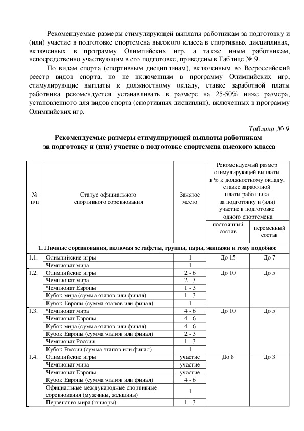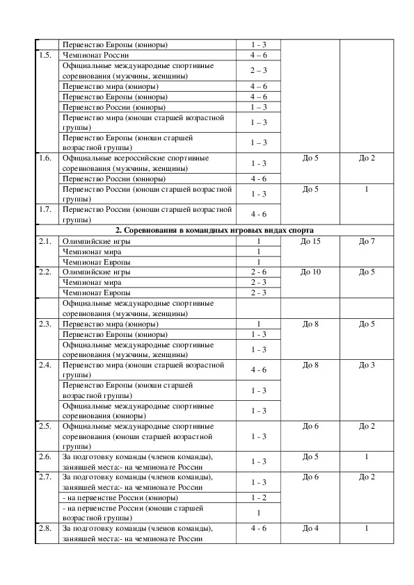 команд, а для командных игровых видов спорта в составы команд спортивных