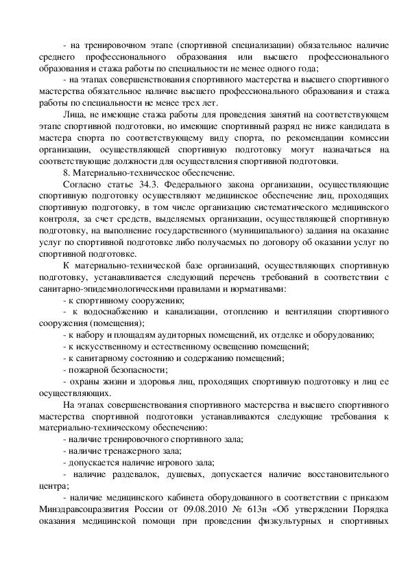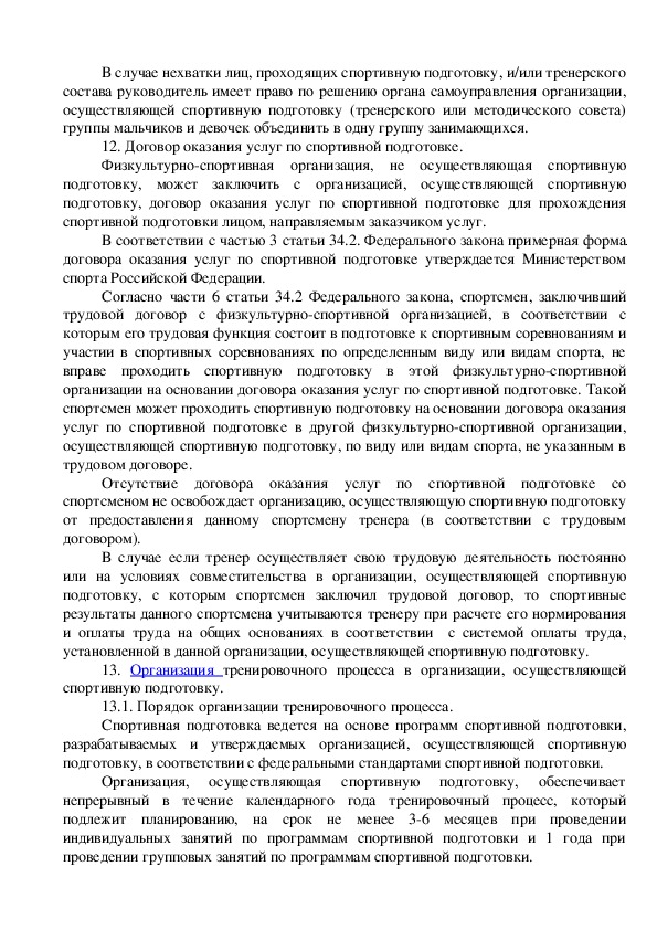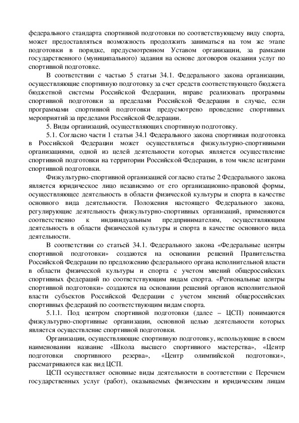 Согласно статье 34.1. Федерального закона спортивная подготовка в