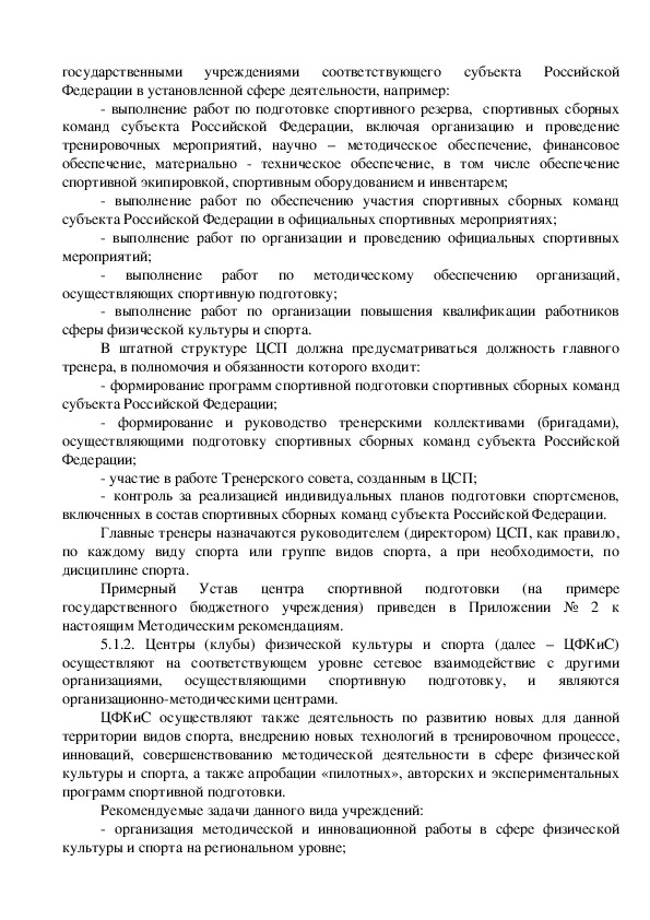 спортивной подготовки на территории Российской Федерации, в том числе центрами