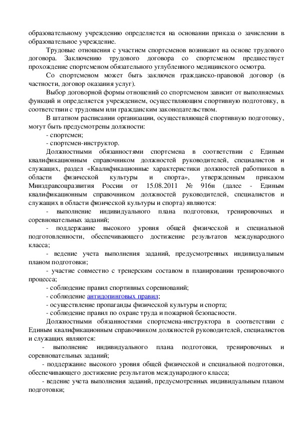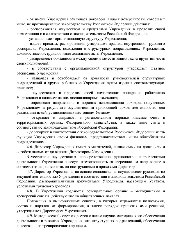 спортивную подготовку, самостоятельно решает вопросы по заключению договоров,