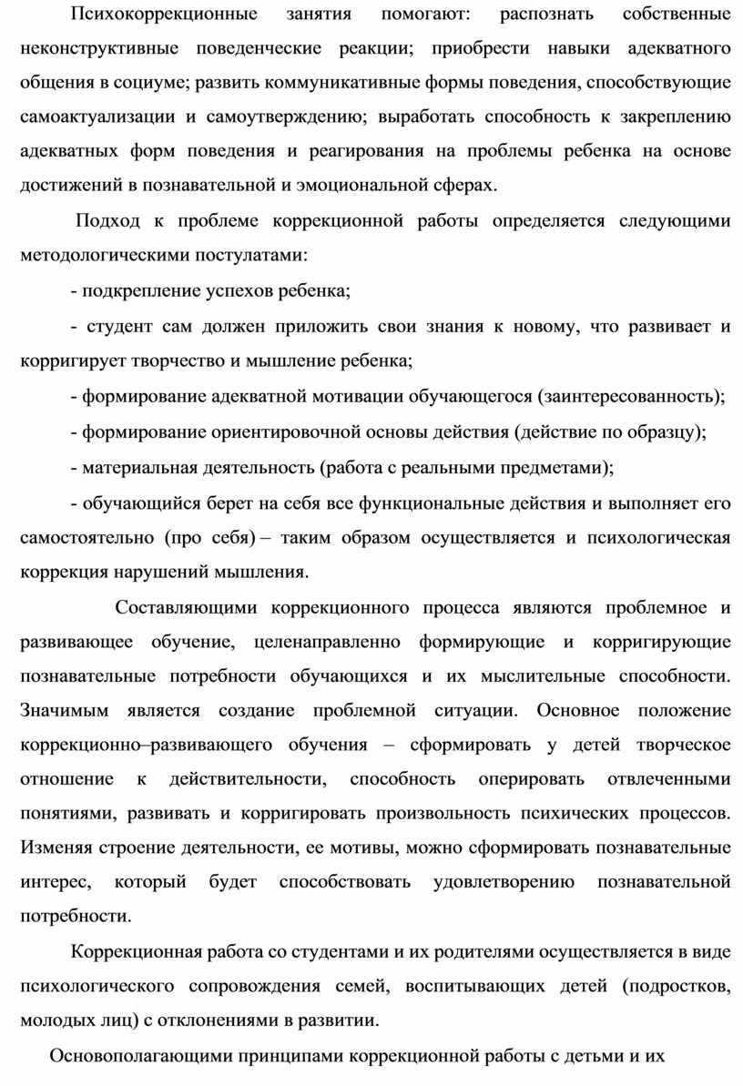 программ (АООП НОО) для детей с ОВЗ. В пакете социальных услуг предусмотрено, что каждый ребенок с инвалидностью должен получать образовательные услуги. Они конкретизируются в индивидуальной программе реабилитации (ИПР), индивидуальной программе обучения (ИПО), независимо от организационно-правовых форм и форм собственности образовательного учреждения: обучение на дому, в доме-интернате, детском саду, в школе, лечебно-педагогическом центре, ПМС центре, в профессиональном образовательном учреждении и др. Еще в начале XX в. в России стал активно развиваться опыт воспитания и обучения детей с тяжелыми нарушениями физического и умственного развития на принципах милосердия, гуманности, медико-педагогической и социальной поддержки детям и их семьям (Е.К. Грачева, М.П. Постовская, В.П. Кащенко, А.Н. Граборов и др.). Прошло несколько десятилетий, прежде чем сложившийся за рубежом и в России научный и практический опыт показал, что создание развивающей, адаптивной, комфортной среды позитивно и качественно меняют личность особого ребенка. В этой части для отечественной науки принципиальное значение приобрела разработка проблем развития и формирования у детей социокультурного опыта (Л.С. Выготский, А.Н. Леонтьев, Д.Б. Эльконин и др.), который складывается благодаря вовлечению детей с различными нарушениями в мир людей, действий, отношений, чувств: «Социальные условия, в которые должен врастать ребенок, и составляют, с одной стороны, всю ту область неприспособленности ребенка, из которой исходят творческие силы его развития; существование препятствий, толкающих ребенка к развитию, коренится в условиях социальной среды, в которую должен войти ребенок». (Л.С. Выготский, 1928 г.). Воспитание детей с тяжелыми нарушениями рассматривается в коррекционной педагогике как беспрерывный процесс обучения, закрепления, повторения и обогащения разнообразных форм их взаимодействия с окружающим миром, как известно, эта работа не ограничивается временными рамками даже для взрослых, ибо многие из них нуждаются в социальном патронировании в течение всей жизни. Коррекционная работа с социальной микросредой ребенка – это комплекс мероприятий по воспитанию, образованию, развитию и социальной защите личности ребёнка. Эта работа с детьми и их родителями осуществляется в виде психологического сопровождения семей, воспитывающих детей (подростков, молодых лиц) с отклонениями в развитии. В коррекционном процессе значим уровень коммуникации родителей и педагогов, что позволяет координировать коррекционные программы. В проектировании индивидуальных и групповых программ психологической коррекции важно учитывать индивидуальные занятия с детьми вместе с родителями; коррекционные беседы, дискуссии с родителями и педагогами, социально-психологические тренинги и многое другое. Психокоррекционные занятия помогают: распознать собственные неконструктивные поведенческие реакции; приобрести навыки адекватного общения в социуме; развить коммуникативные формы поведения, способствующие самоактуализации и самоутверждению; выработать способность к закреплению адекватных форм поведения и реагирования на проблемы ребенка на основе достижений в познавательной и эмоциональной сферах. Подход к проблеме коррекционной работы определяется следующими методологи