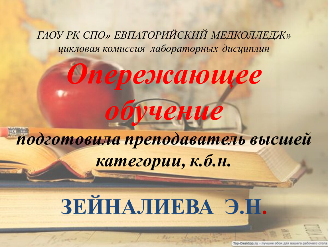 ГАОУ РК СПО» ЕВПАТОРИЙСКИЙ МЕДКОЛЛЕДЖ» цикловая комиссия лабораторных дисциплинОпережающее обучениеподготовила преподаватель высшей категории, к.б.н. ЗЕЙНАЛИЕВА Э.Н.