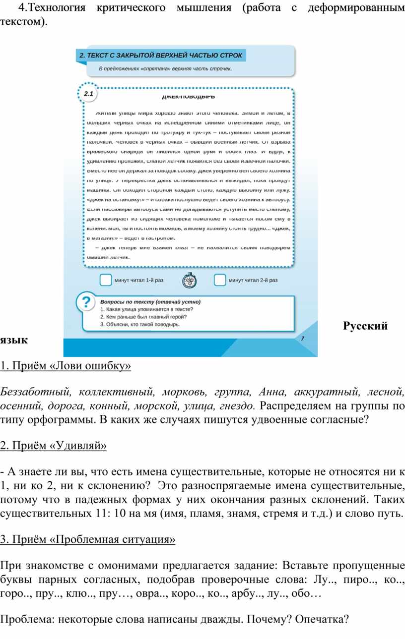 (работа с деформированным текстом).