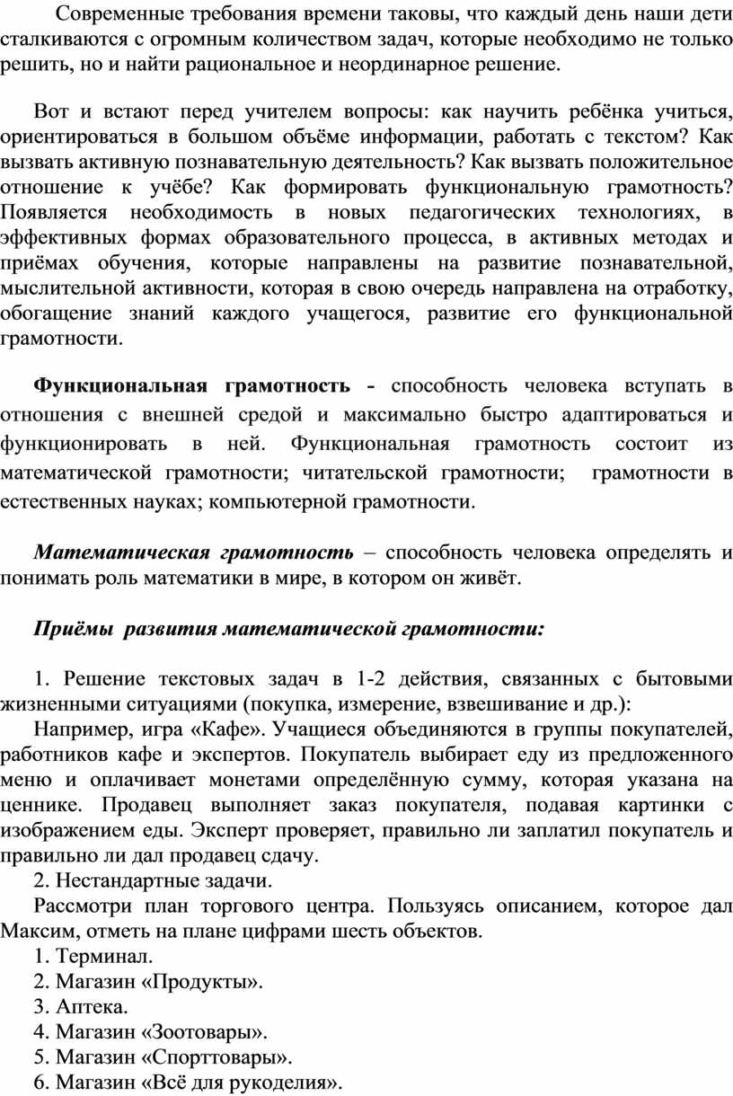 Приёмы развития математической грамотности: