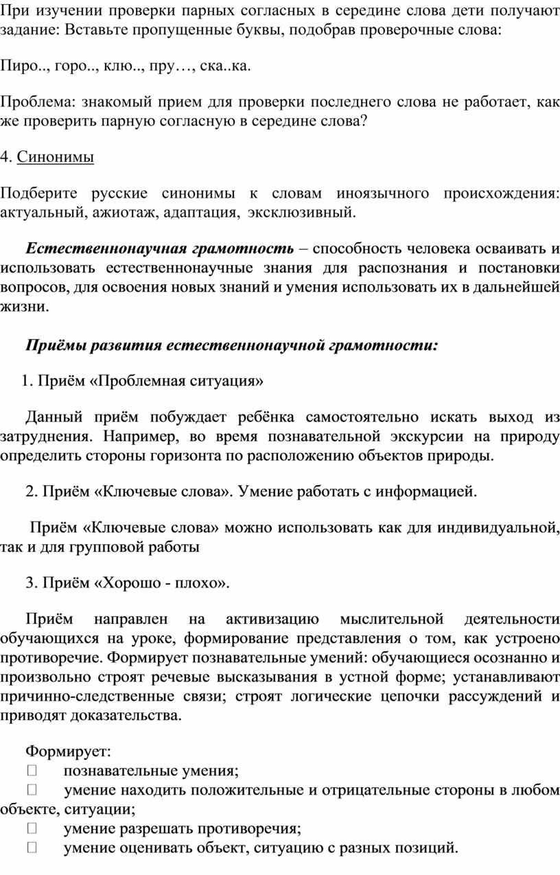 Приёмы развития естественнонаучной грамотности: