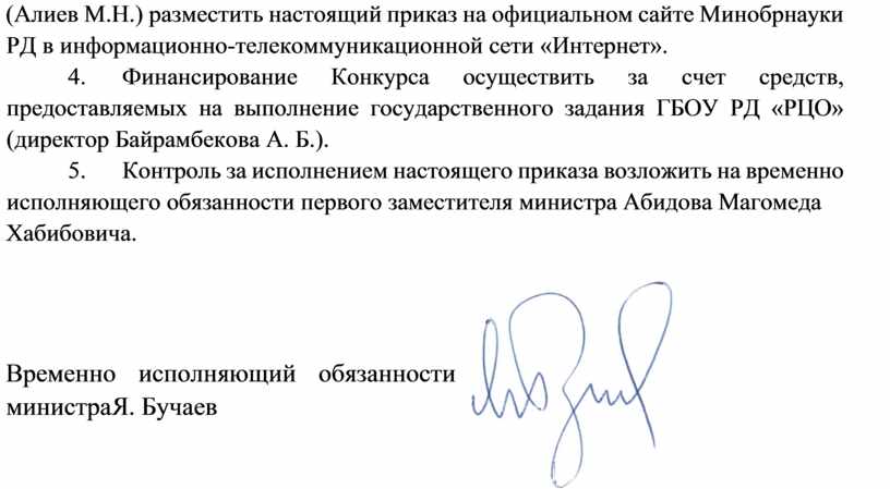 (Алиев М.Н.) разместить настоящий приказ на официальном сайте Минобрнауки РД в информационно-телекоммуникационной сети «Интернет».