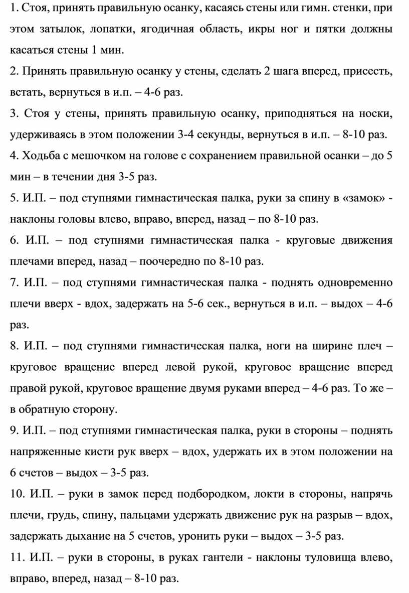 Корригирующие упражнения, направленные на профилактику нарушений осанки