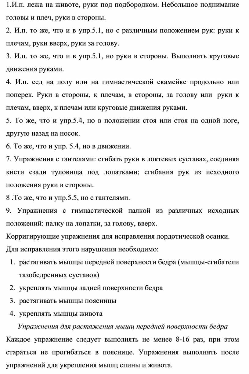 Корригирующие упражнения для исправления лордотической осанки.
