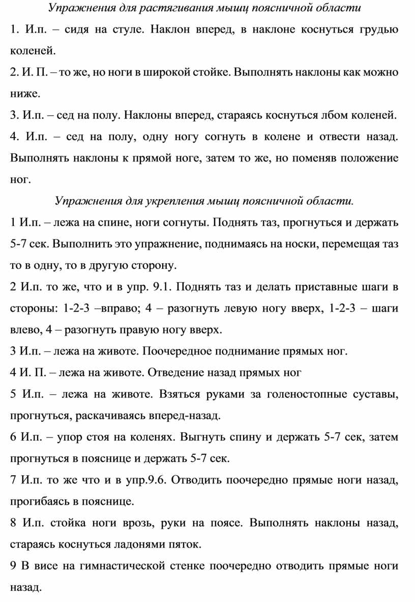 Упражнения для укрепления мышц поясничной области.