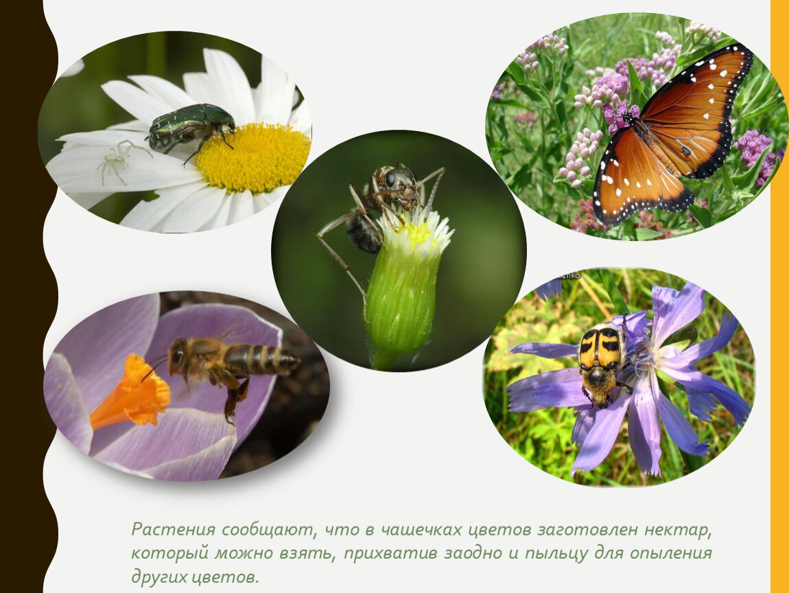 Растения сообщают, что в чашечках цветов заготовлен нектар, который можно взять, прихватив заодно и пыльцу для опыления других цветов.