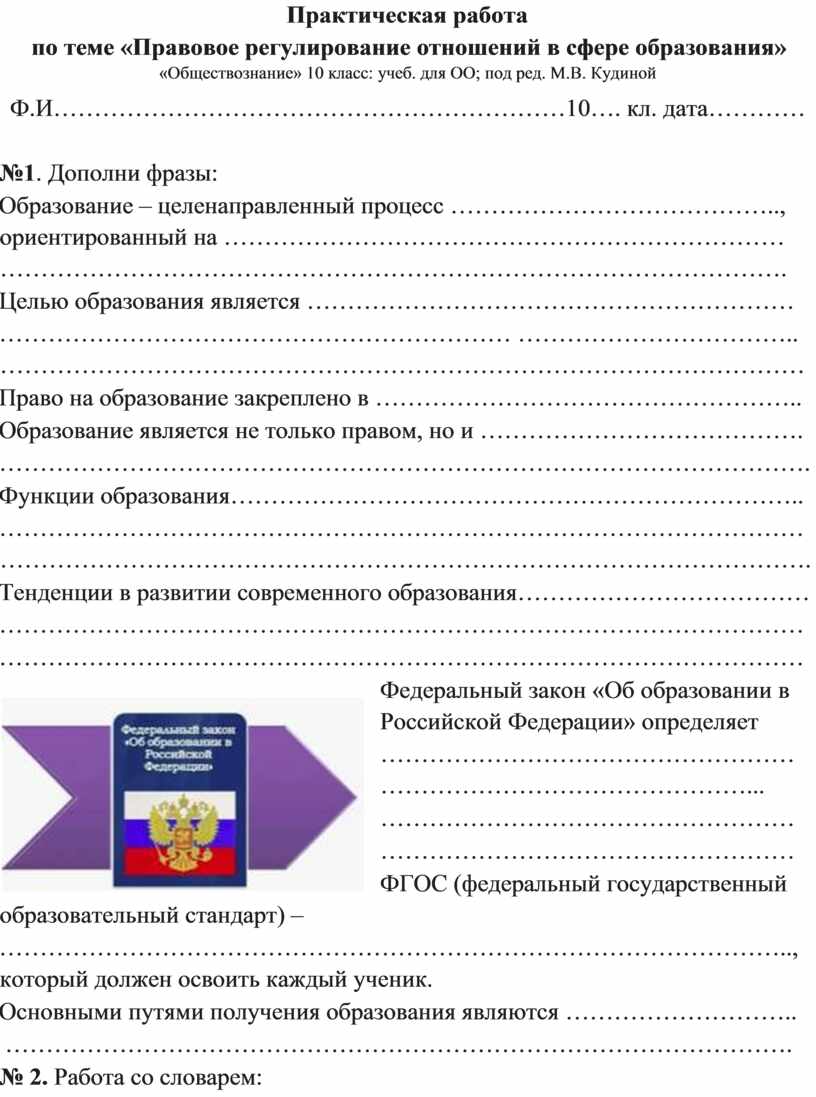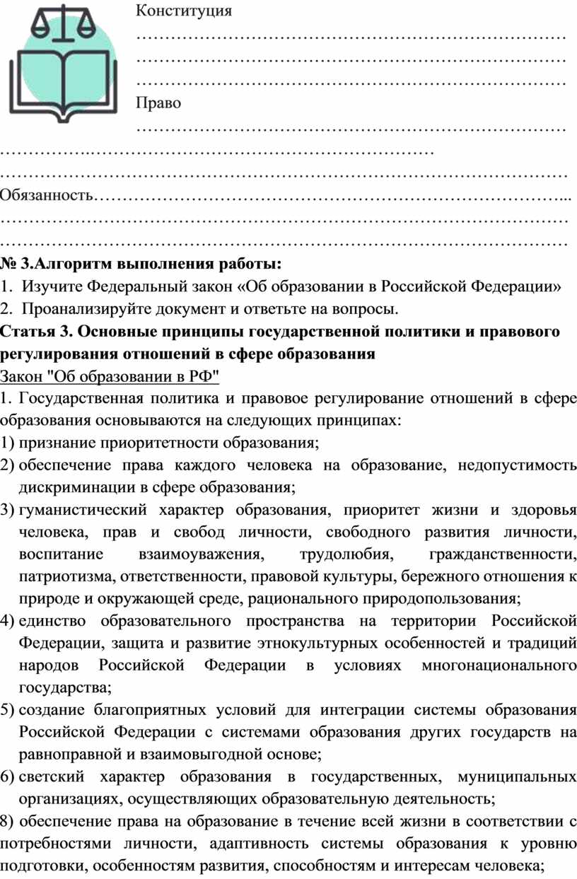 1. Изучите Федеральный закон «Об образовании в Российской Федерации»