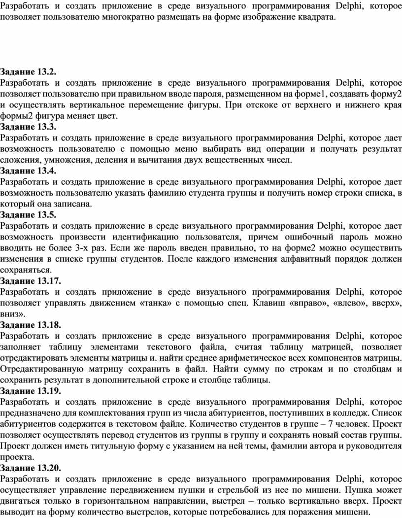 Разработать и создать приложение в среде визуального программирования Delphi, которое предназначено для комплектования групп из числа абитуриентов, поступивших в колледж. Список абитуриентов содержится в текстовом файле. Количество студентов в группе – 7 человек. Проект позволяет осуществлять перевод студентов из группы в группу и сохранять новый состав группы. Проект должен иметь титульную форму с указанием на ней темы, фамилии автора и руководителя проекта.