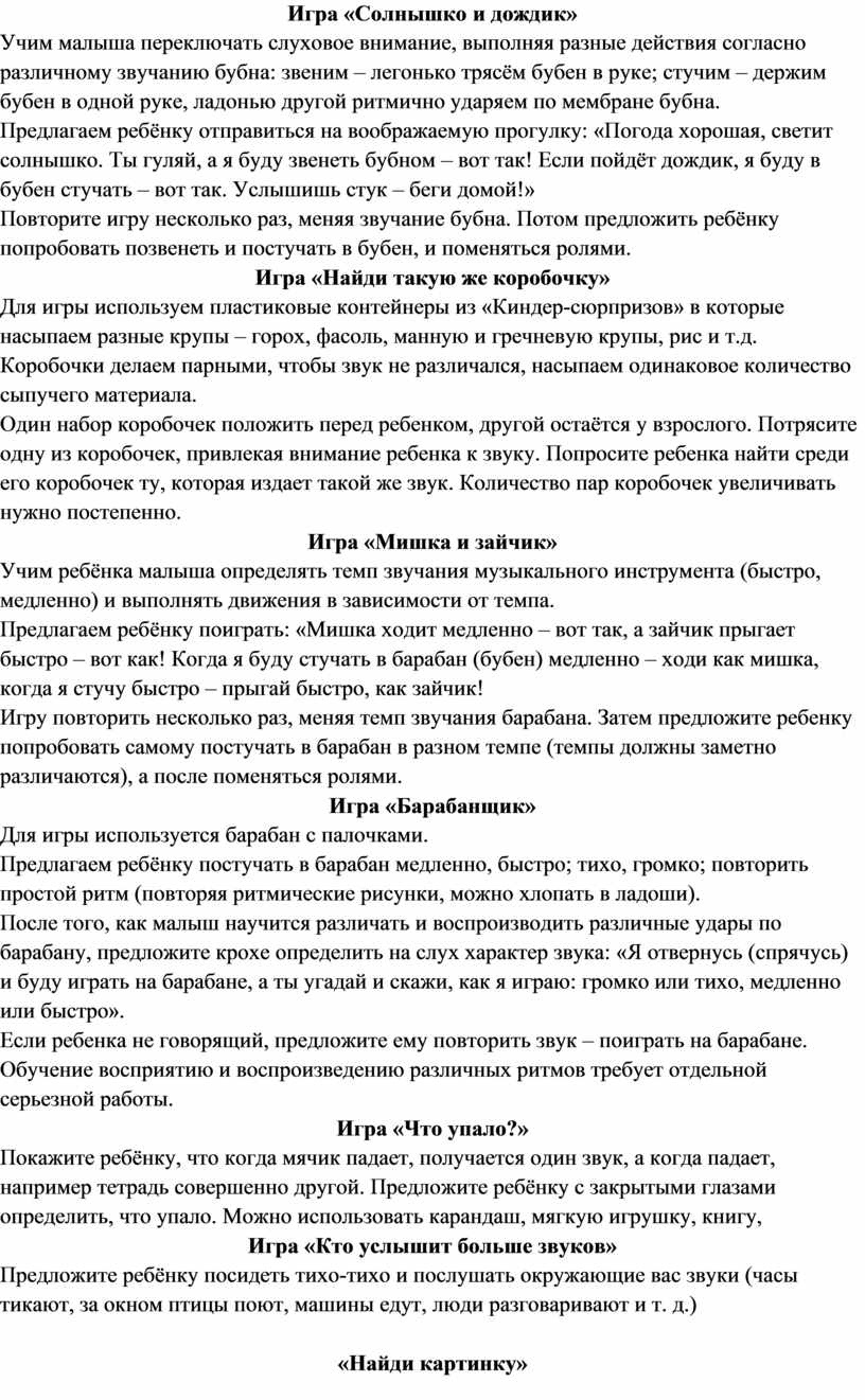 барабану, предложите крохе определить на слух характер звука: «Я отвернусь