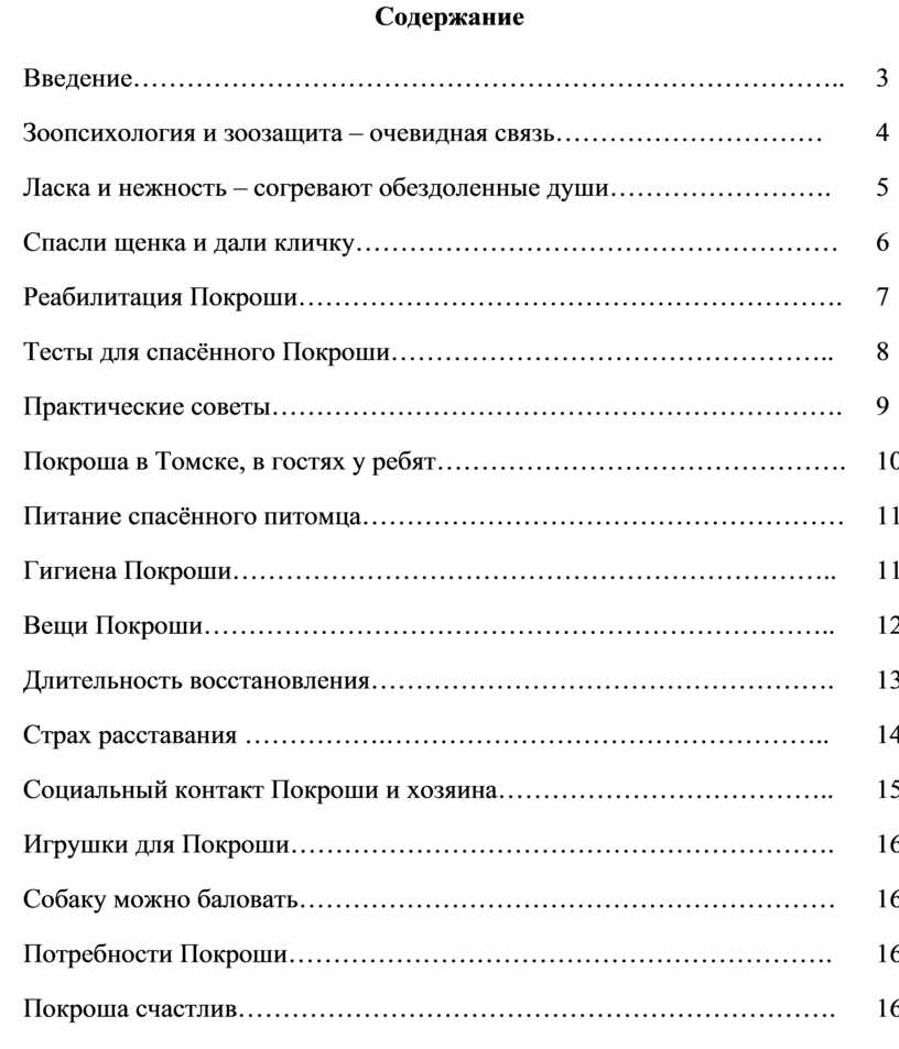 Социальный контакт Покроши и хозяина……………………………….. |