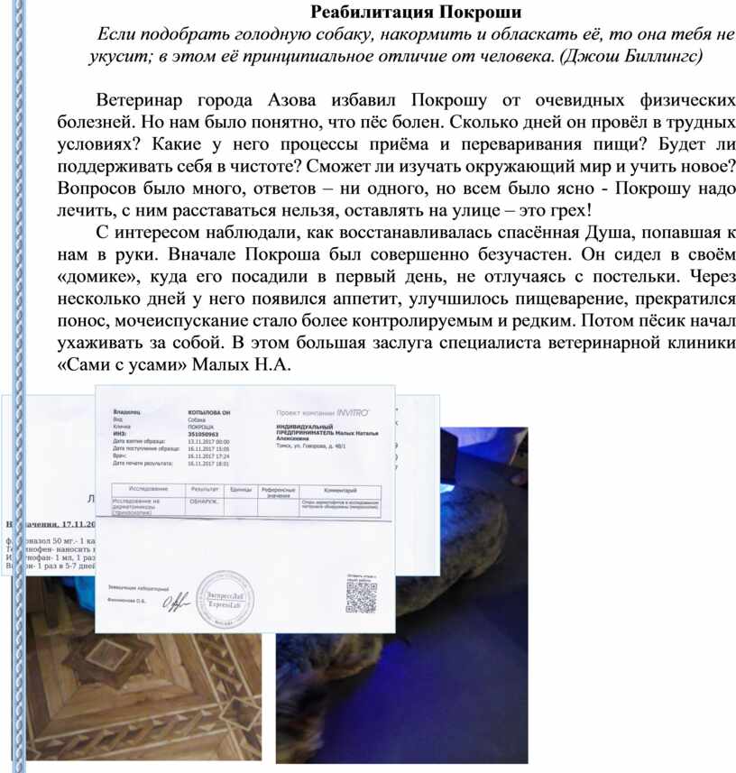 всех потребностей спасённого Покроши очень важно для физического и ментального