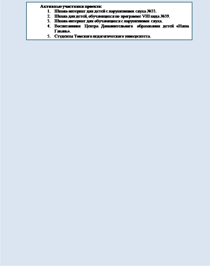 «Участие в жизнедеятельности детей с нарушениями слуха»,
