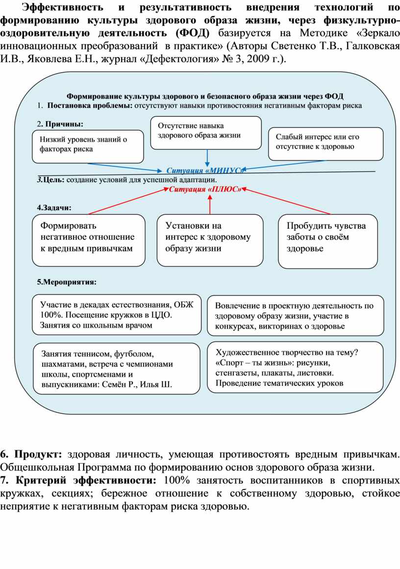 6. Продукт: здоровая личность, умеющая противостоять вредным привычкам. Общешкольная Программа по формированию основ здорового образа жизни.