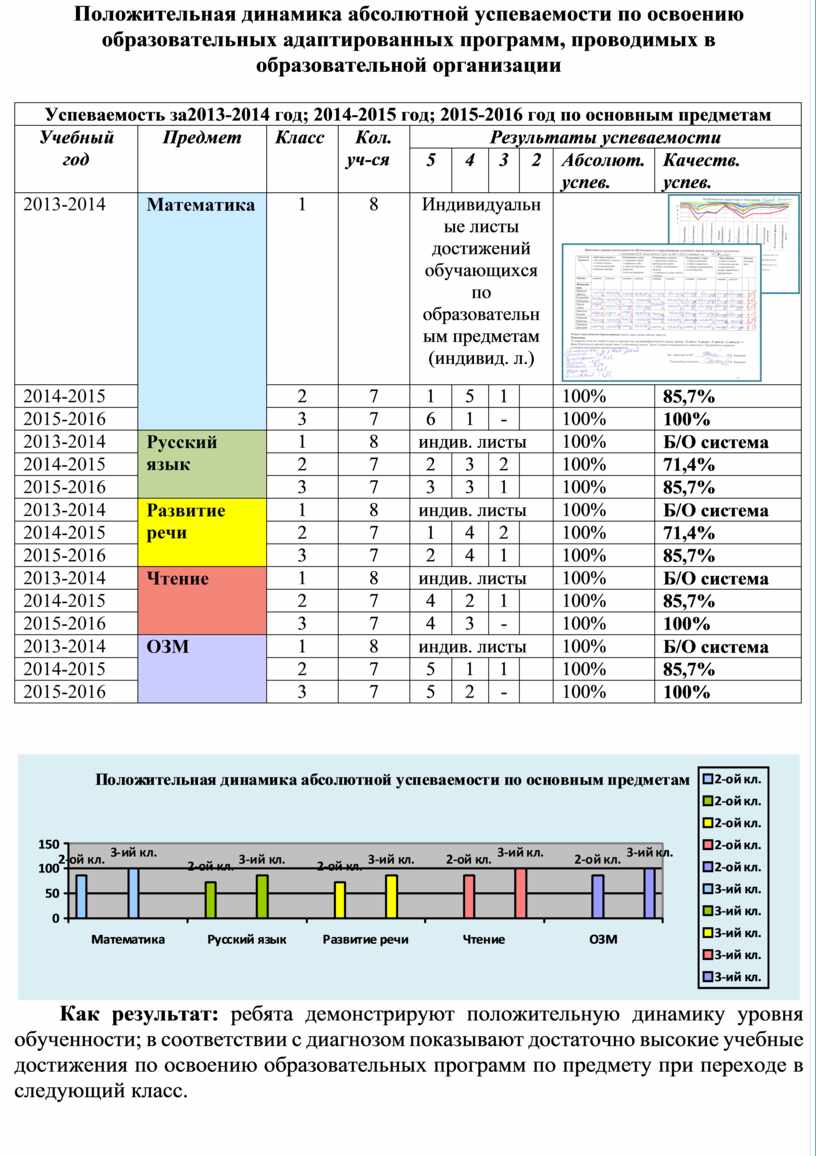 Положительная динамика абсолютной успеваемости по освоению образовательных адаптированных программ, проводимых в образовательной организации