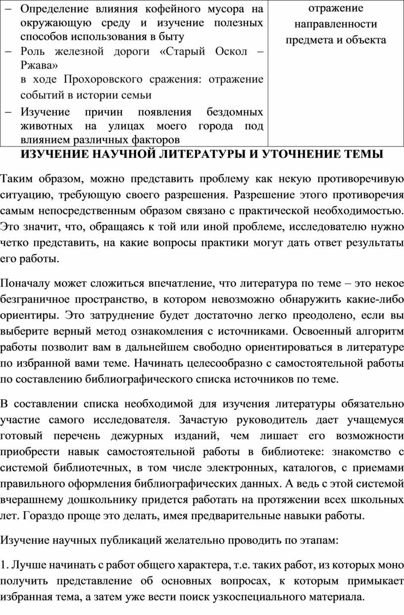 Правильная постановка и ясная формулировка новых проблем в исследовании очень важны. Она определяет стратегию исследования, направление научного поиска. На данном этапе работы не всегда моно определить тему исследования, пути и способы ее разработки и осуществления. Для этого необходимо изучить научную литературу по вопросу. После чего тема обычно уточняется, изменяется.