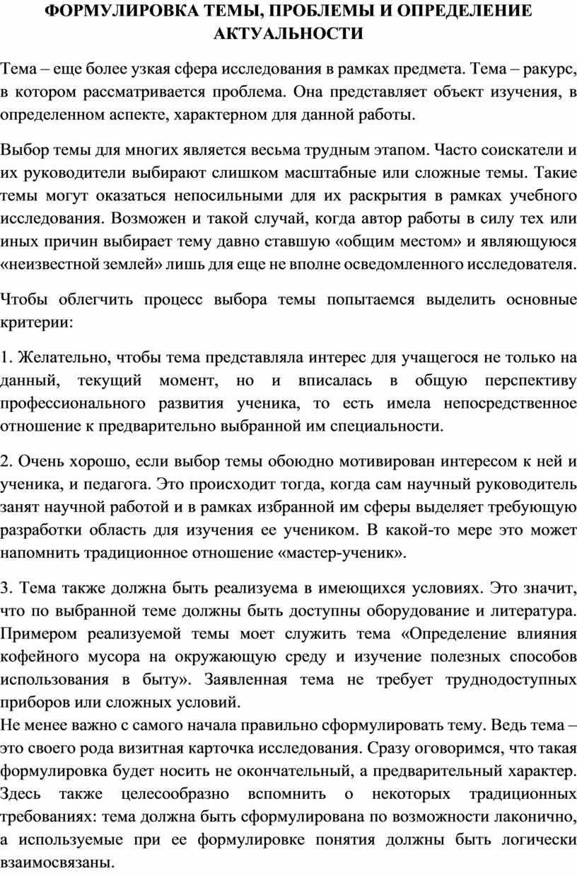 1. Желательно, чтобы тема представляла интерес для учащегося не только на данный, текущий момент, но и вписалась в общую перспективу профессионального развития ученика, то есть имела непосредственное отношение к предварительно выбранной им специальности.