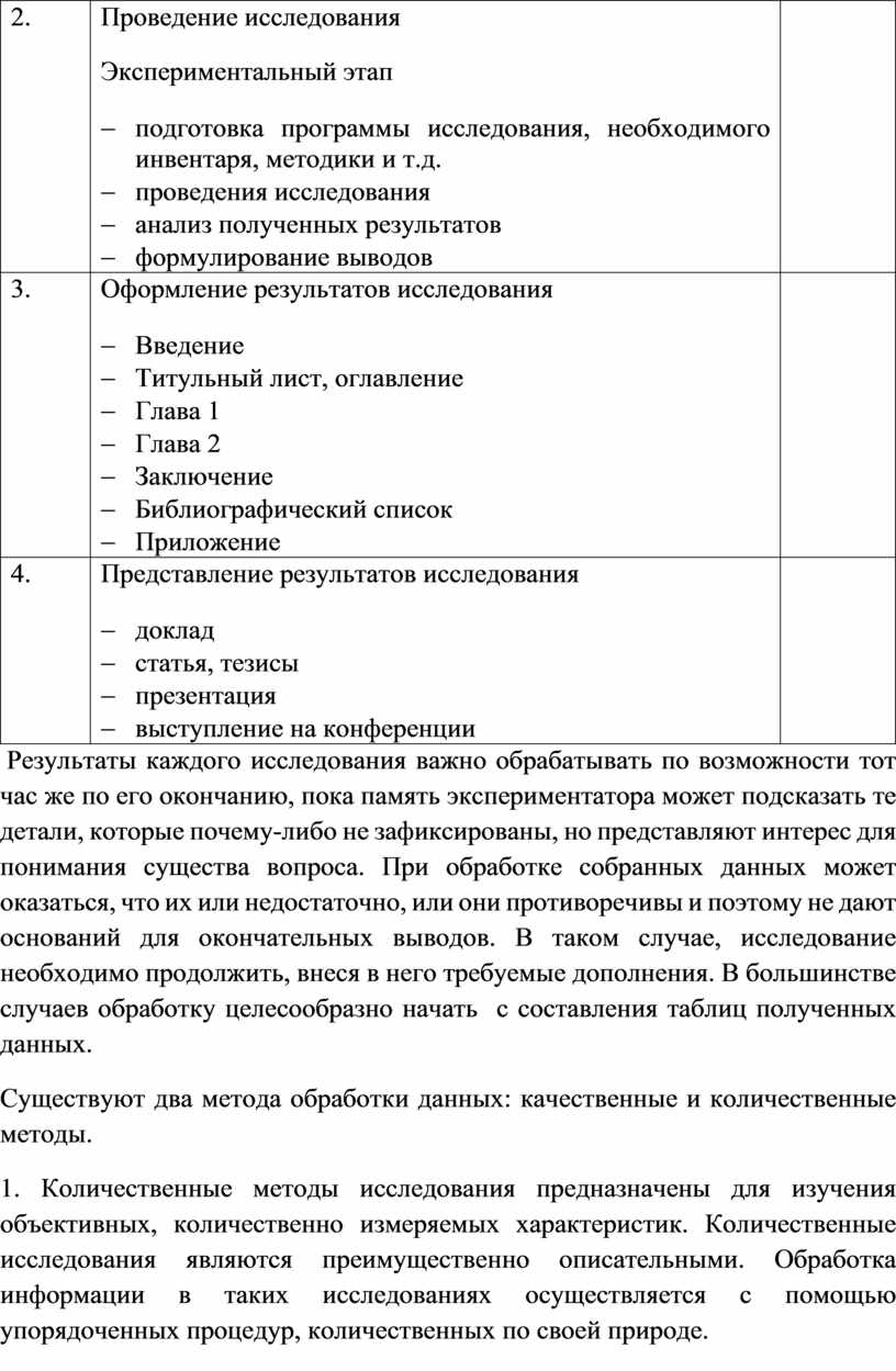 Результаты каждого исследования важно обрабатывать по возможности тот час же по его окончанию, пока память экспериментатора может подсказать те детали, которые почему-либо не зафиксированы, но представляют интерес для понимания существа вопроса. При обработке собранных данных может оказаться, что их или недостаточно, или они противоречивы и поэтому не дают оснований для окончательных выводов. В таком случае, исследование необходимо продолжить, внеся в него требуемые дополнения. В большинстве случаев обработку целесообразно начать с составления таблиц полученных данных.