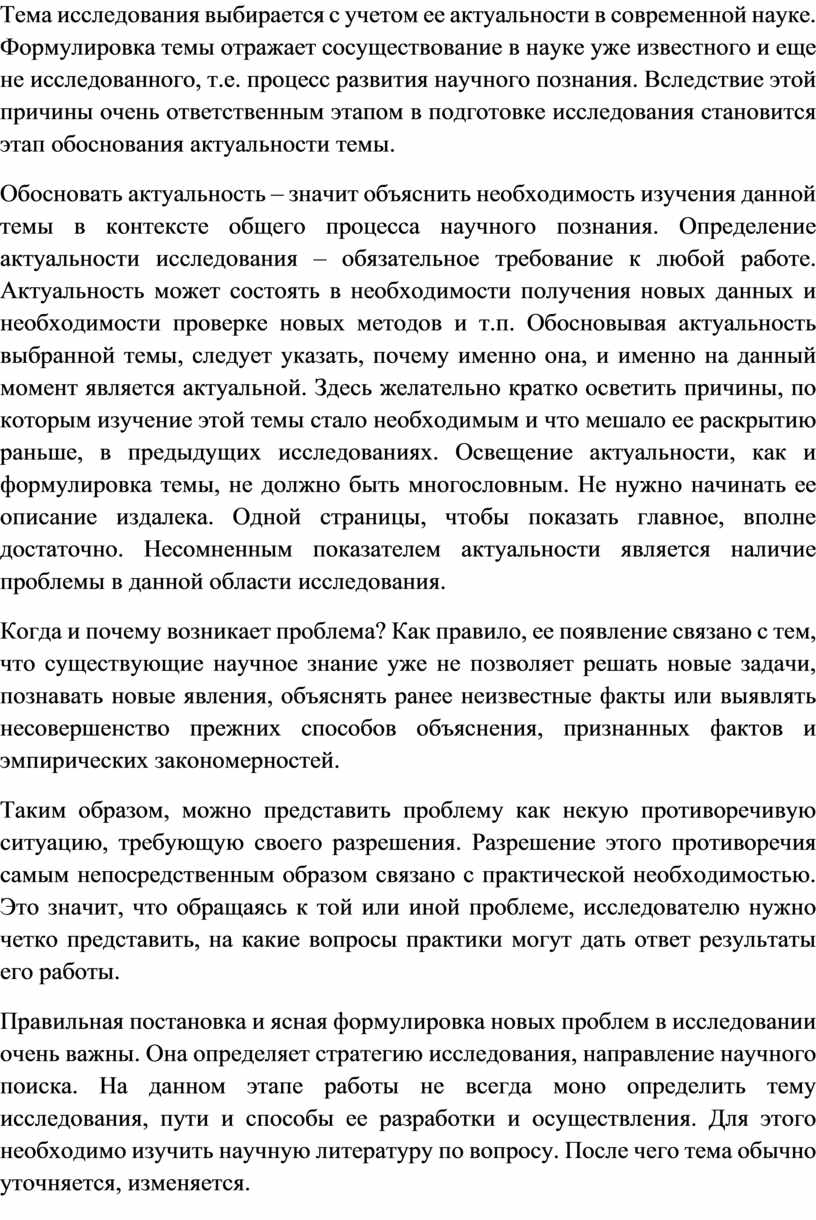 Тема исследования выбирается с учетом ее актуальности в современной науке. Формулировка темы отражает сосуществование в науке уже известного и еще не исследованного, т.е. процесс развития научного познания. Вследствие этой причины очень ответственным этапом в подготовке исследования становится этап обоснования актуальности темы.