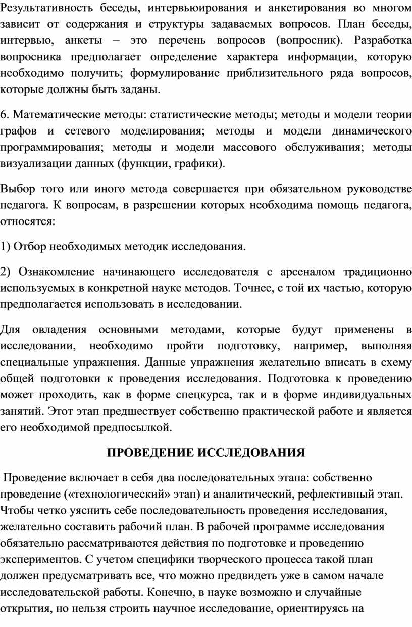 2) Ознакомление начинающего исследователя с арсеналом традиционно используемых в конкретной науке методов. Точнее, с той их частью, которую предполагается использовать в исследовании.