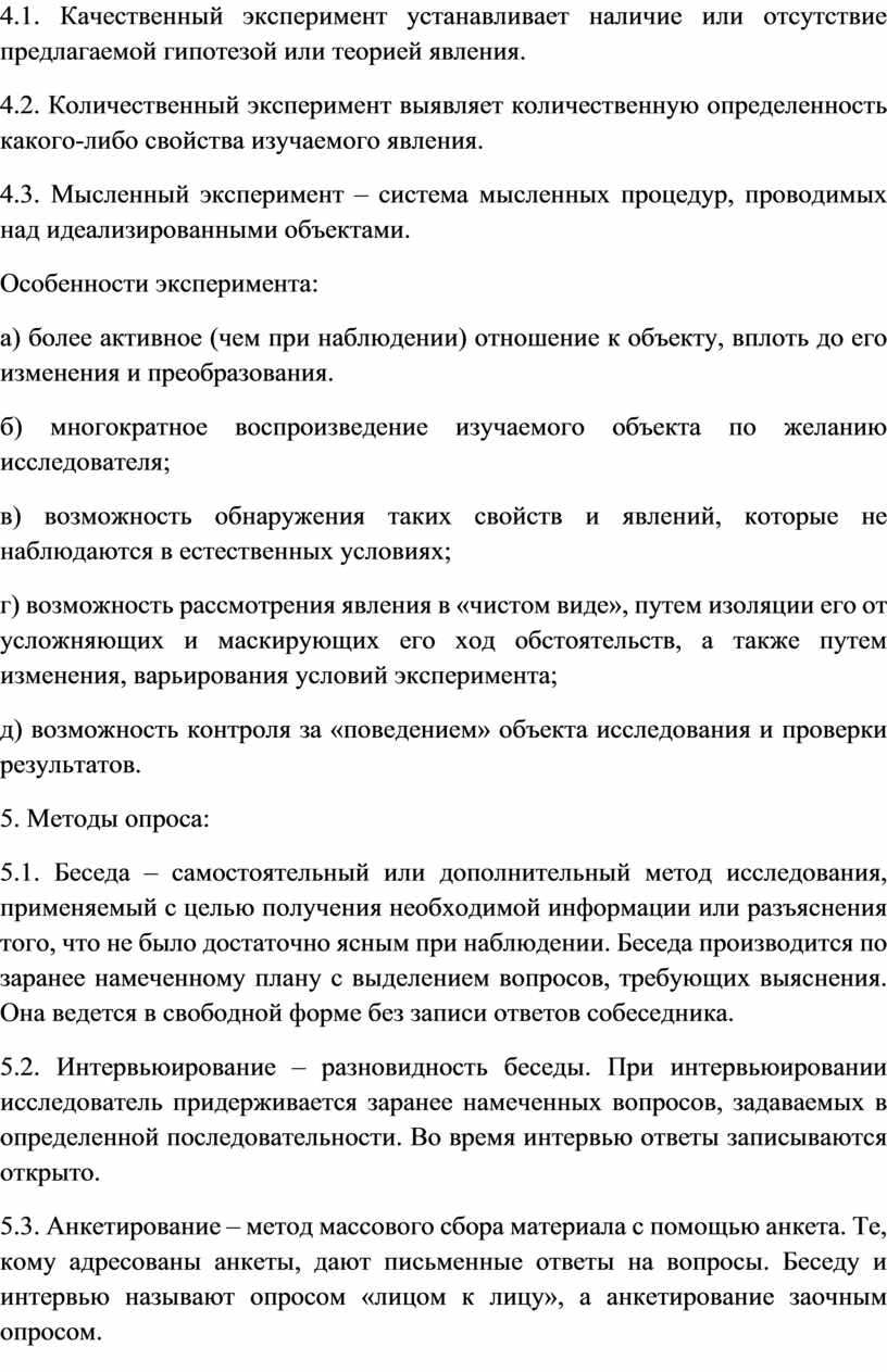 4.1. Качественный эксперимент устанавливает наличие или отсутствие предлагаемой гипотезой или теорией явления.