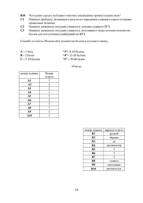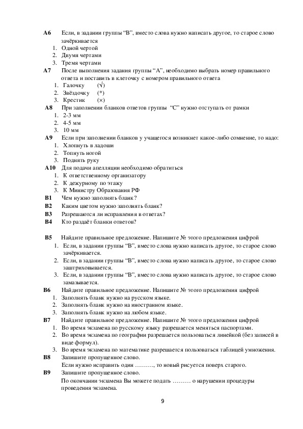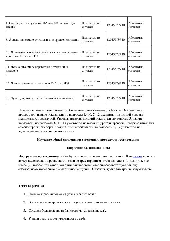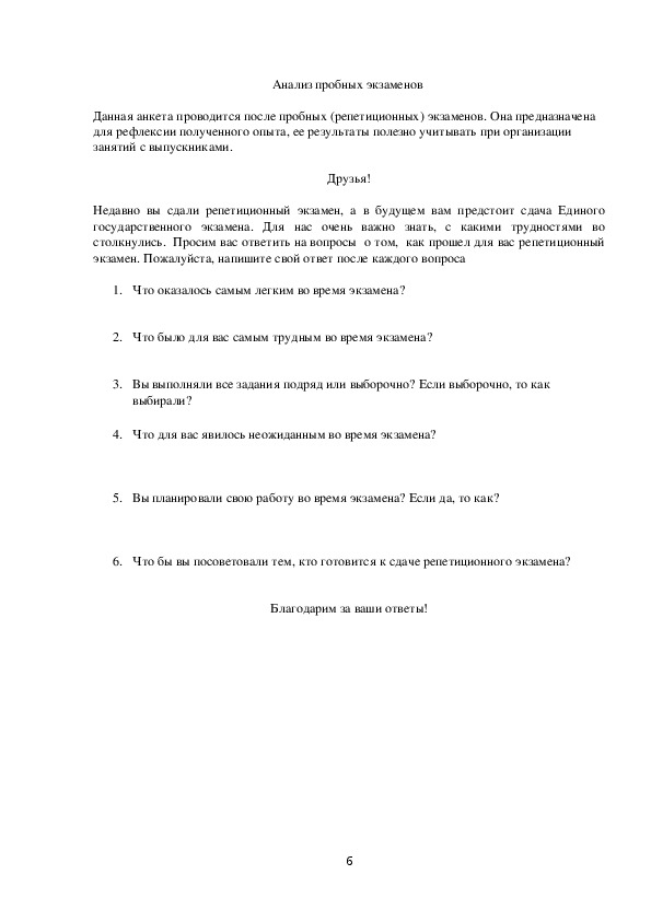 Данная анкета проводится после пробных (репетиционных) экзаменов. Она предназначена