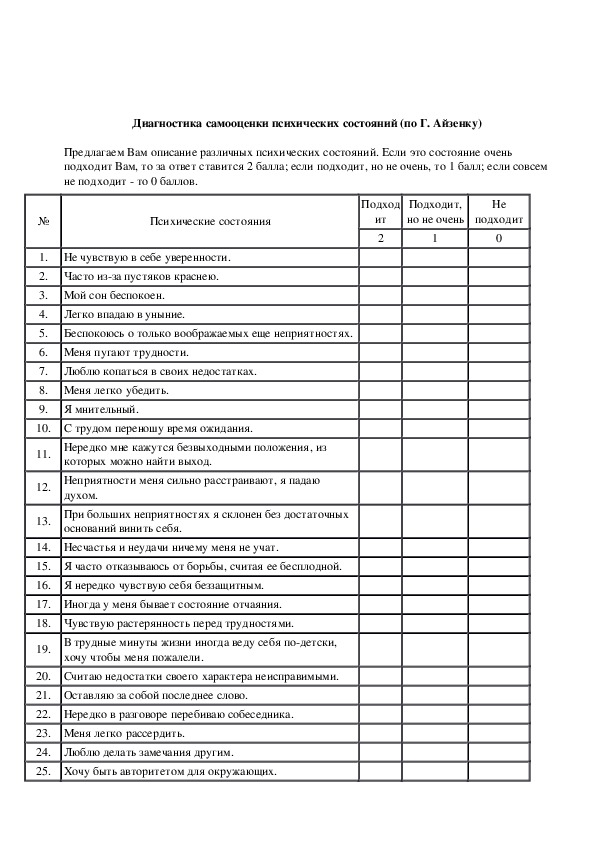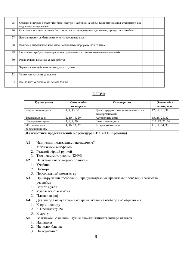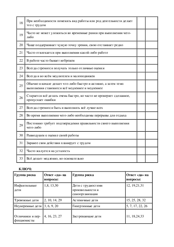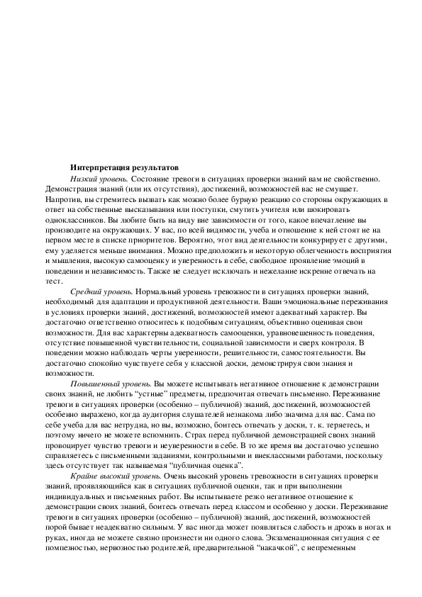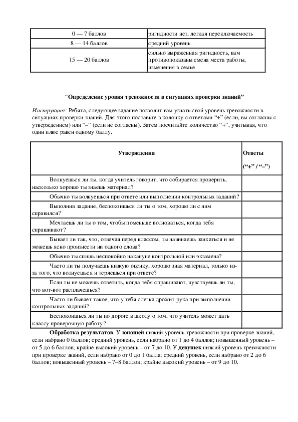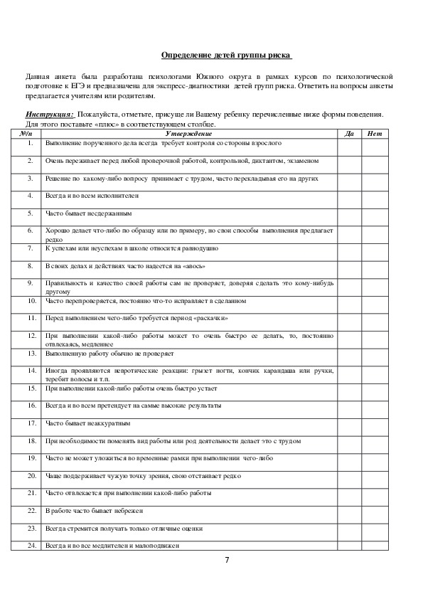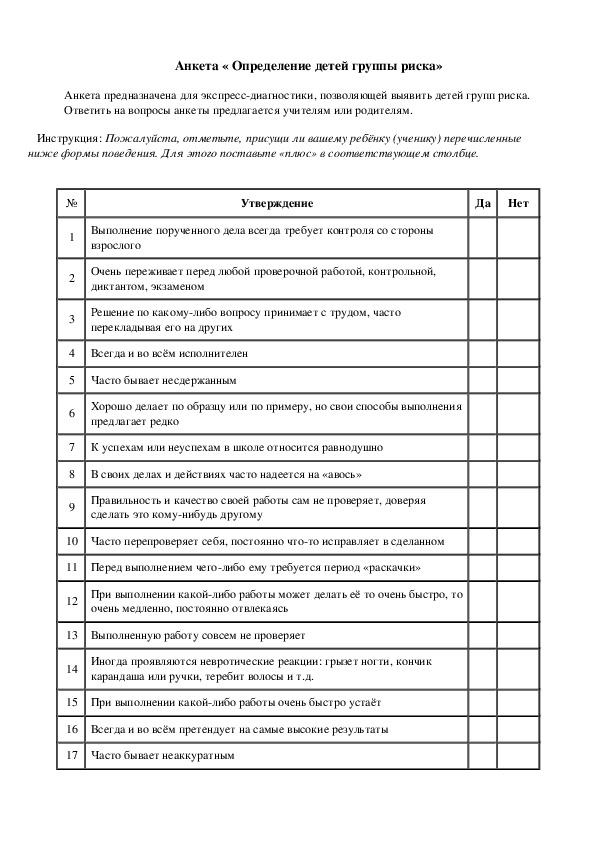 (процессуальный компонент). Анкета может проводится для скрининговой диагностики в выпускных