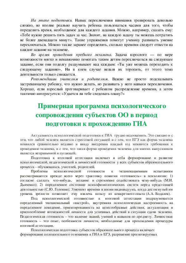 Методический сборник "Готовимся к ГИА"В сборнике представлены схема работы педагога-психолога общеобразовательной организации по психологическому сопровождению субъектов образовательных отношений, диагностические материалы (тесты, анкеты, опросники), стратегии поддержки детей в период подготовки к ГИА, примерная программа психологического сопровождения субъектов ОО в период подготовки к прохождению ГИА.