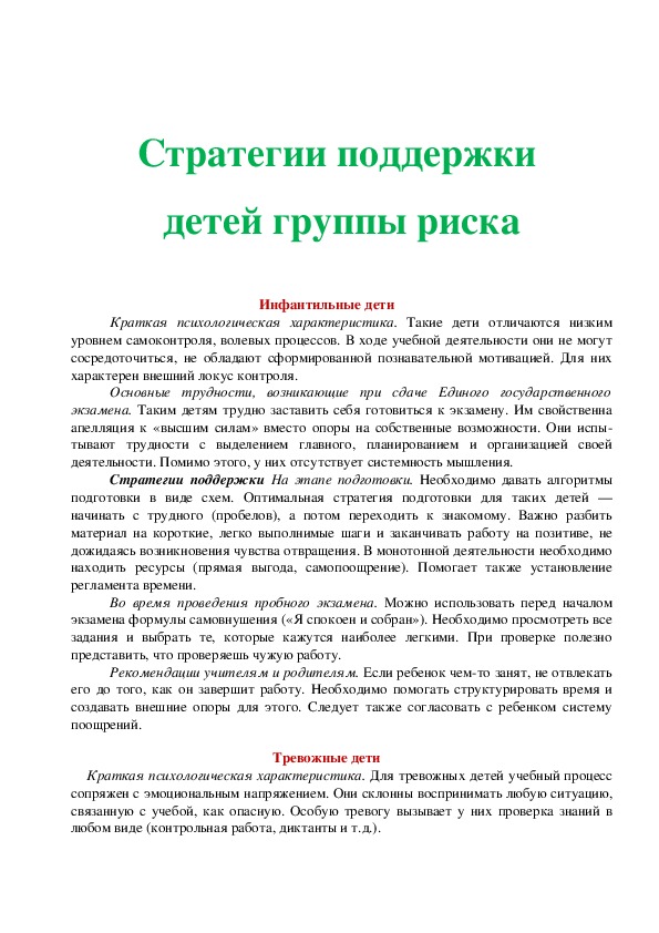 Стратегии поддержки детей группы риска……………….18Примерная программа психологического сопровождения