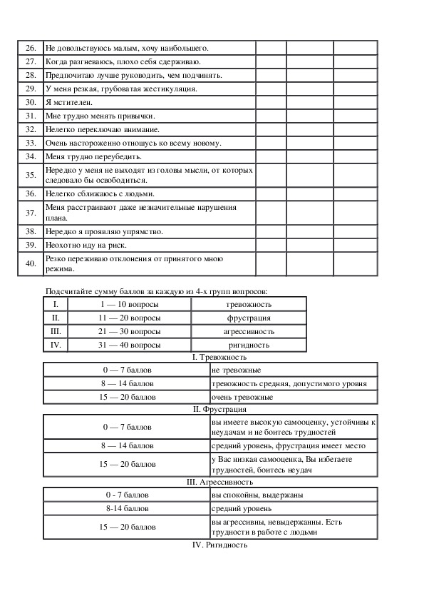 вопросам 2, 3, 9 указывают на недостаточное владение навыками самоконтроля