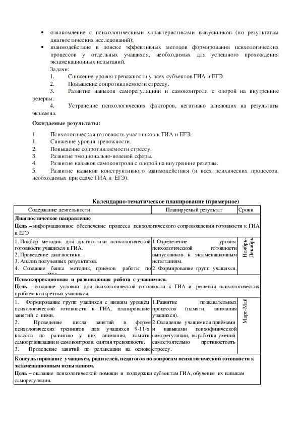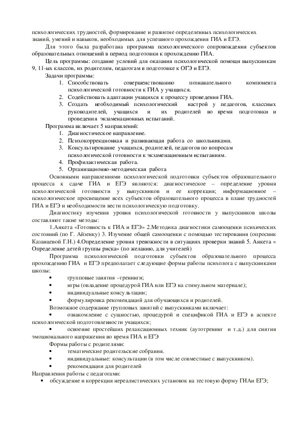 Цель – оказание психологической помощи и поддержки субъектам ГИА, обучение их навыкам