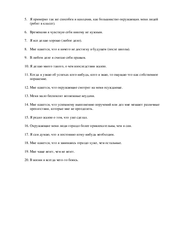 Просим вас оценить свое согласие или несогласие с данными утверждениями по 10