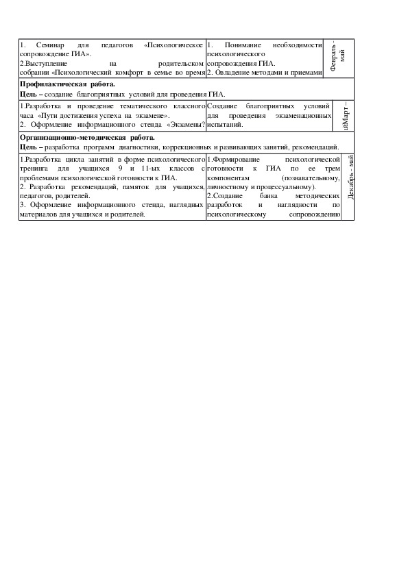 Цель – создание условий для психологической готовности к ГИА и решения психологических