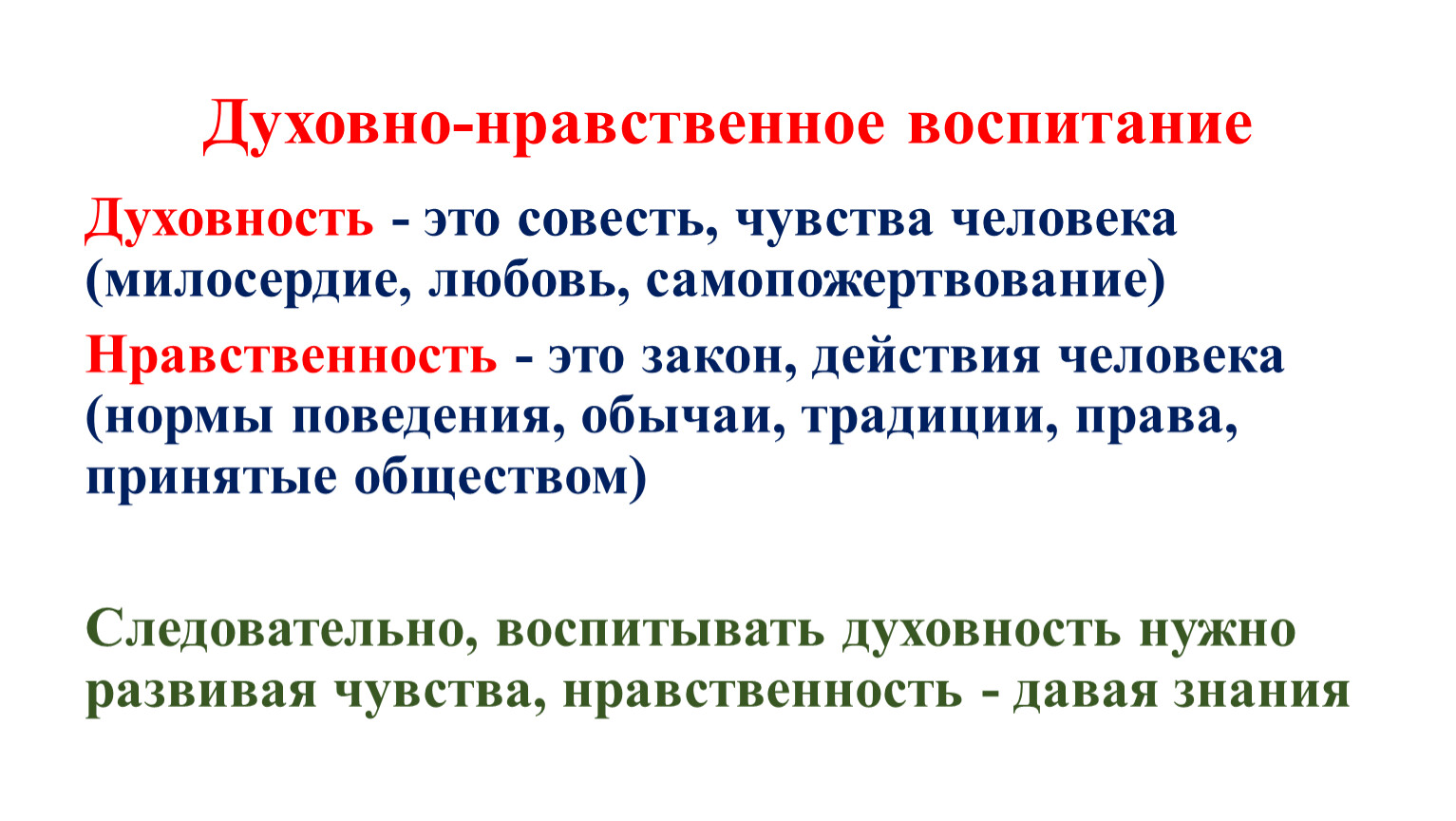 Следовательно, воспитывать духовность нужно развивая чувства, нравственность - давая знания