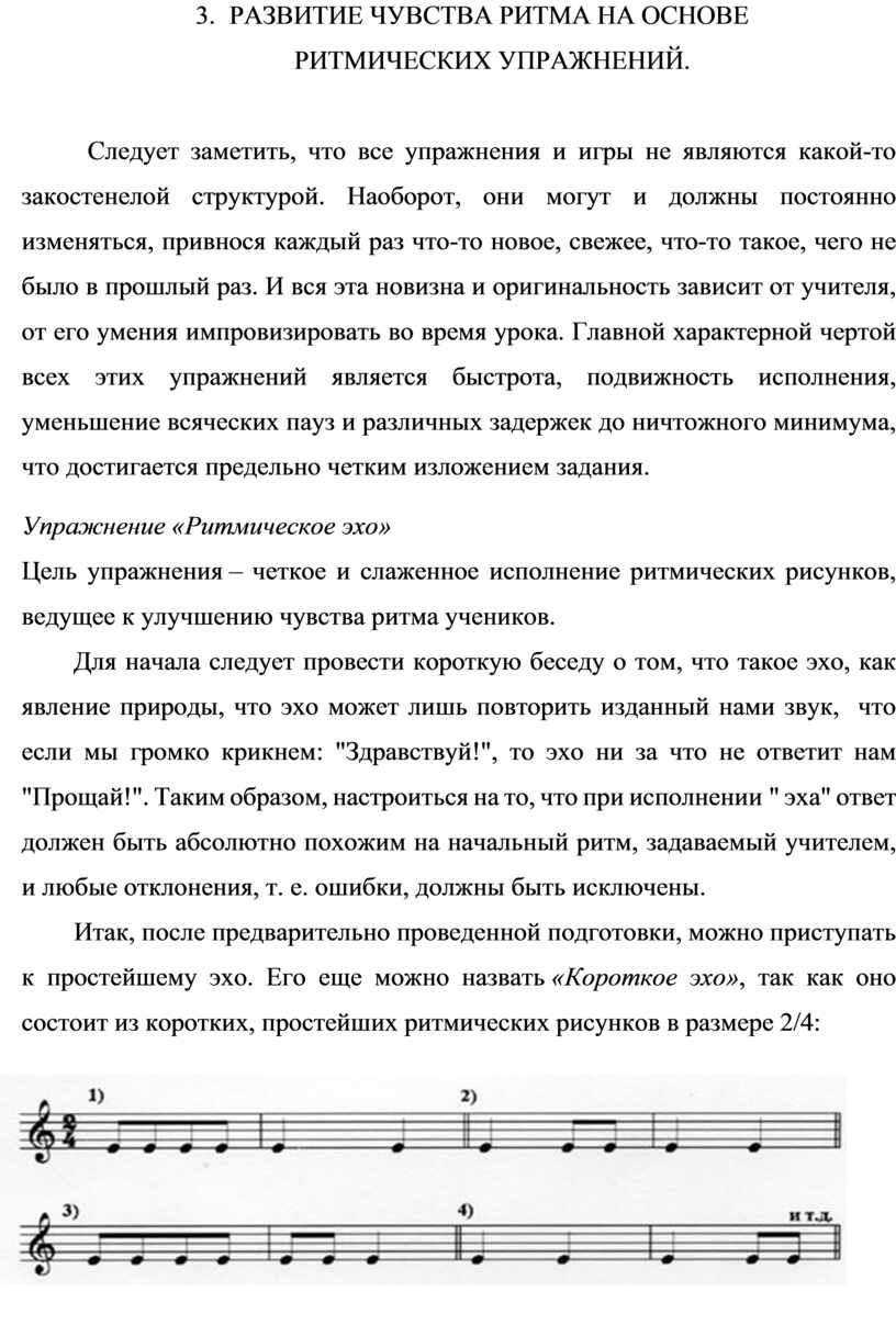 4. Развитие чувства ритма на основе ритмических упражнений