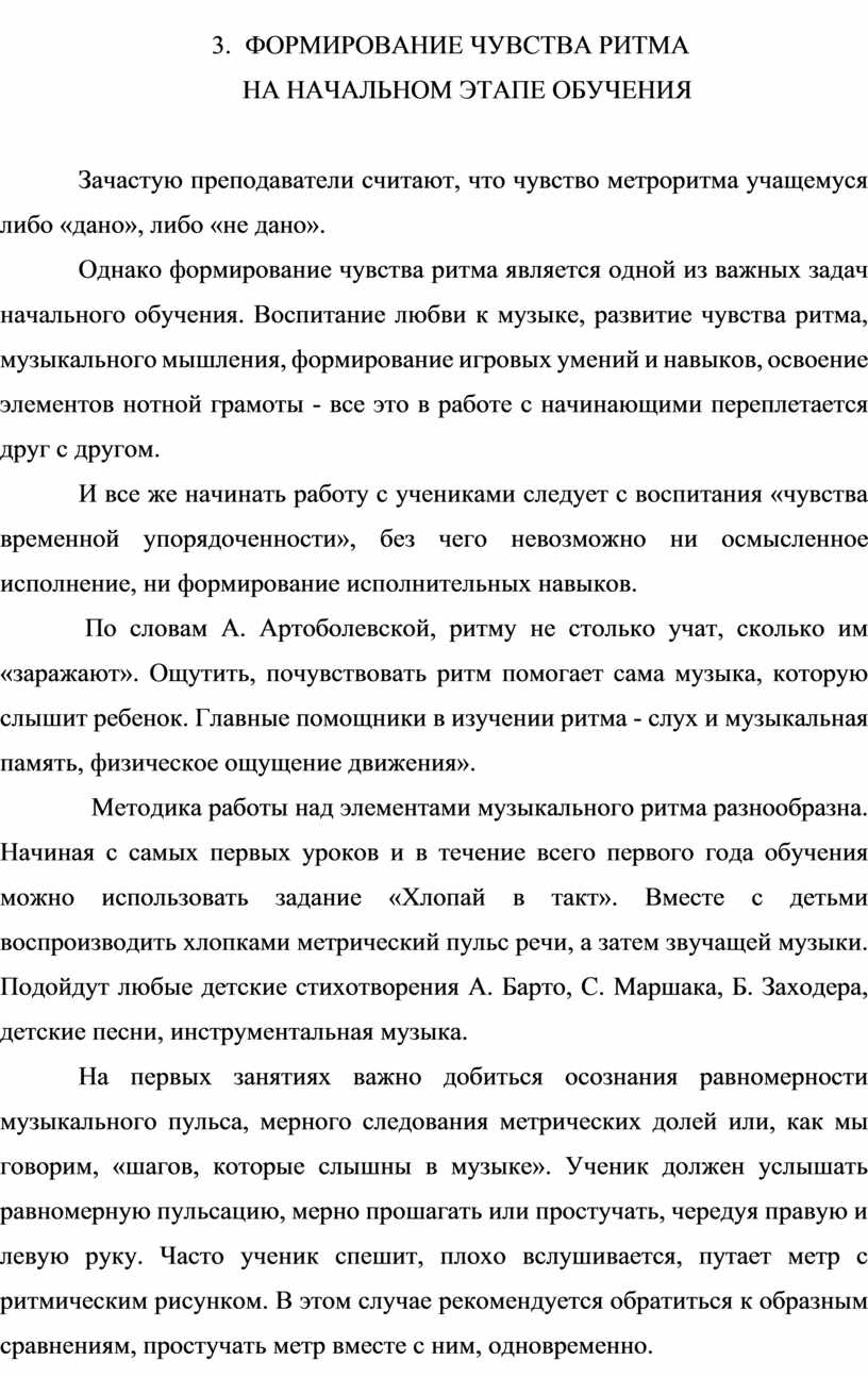 3. Формирование чувства ритма на начальном этапе обучения