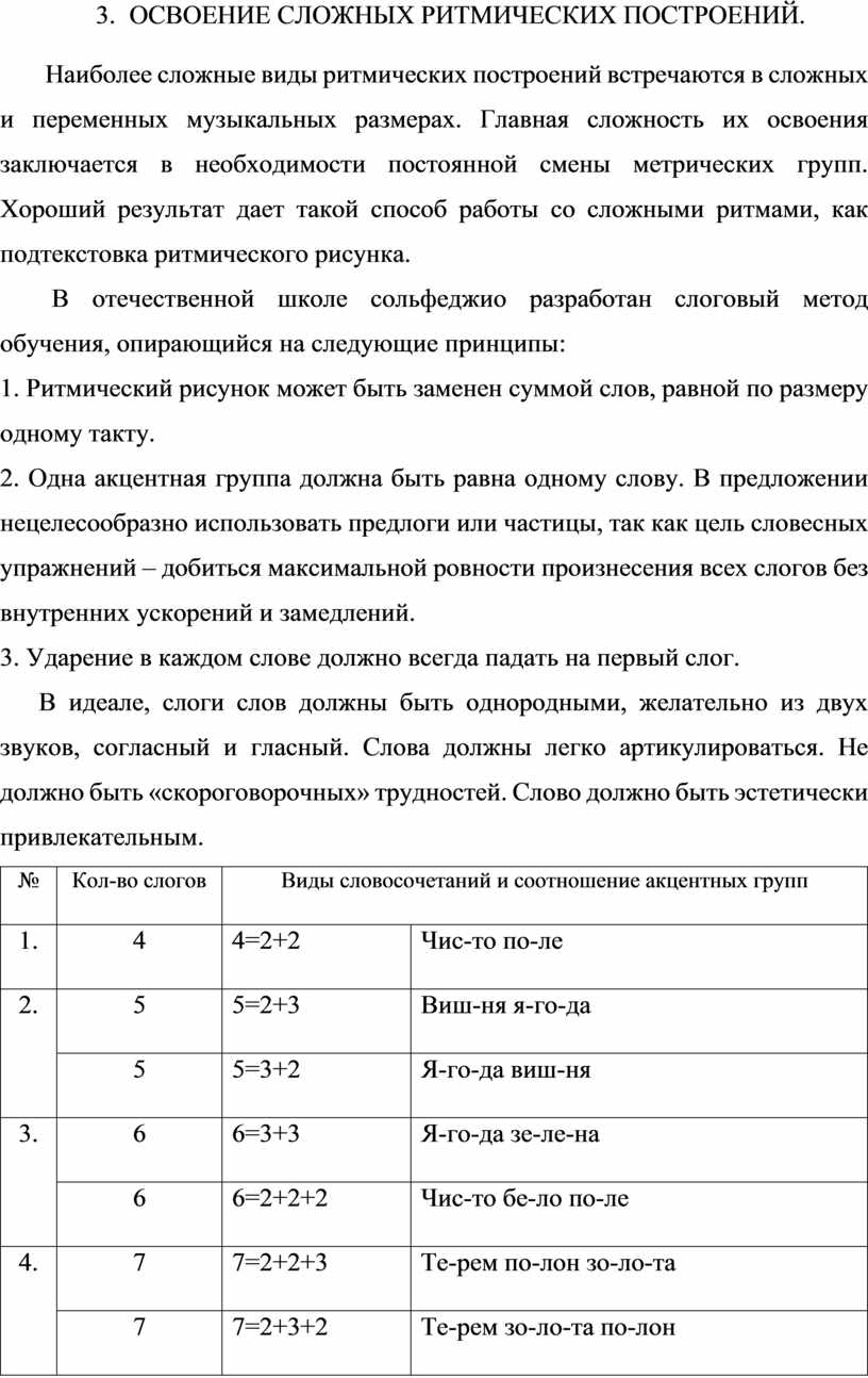 5. ОСВОЕНИЕ СЛОЖНЫХ РИТМИЧЕСКИХ ПОСТРОЕНИЙ.