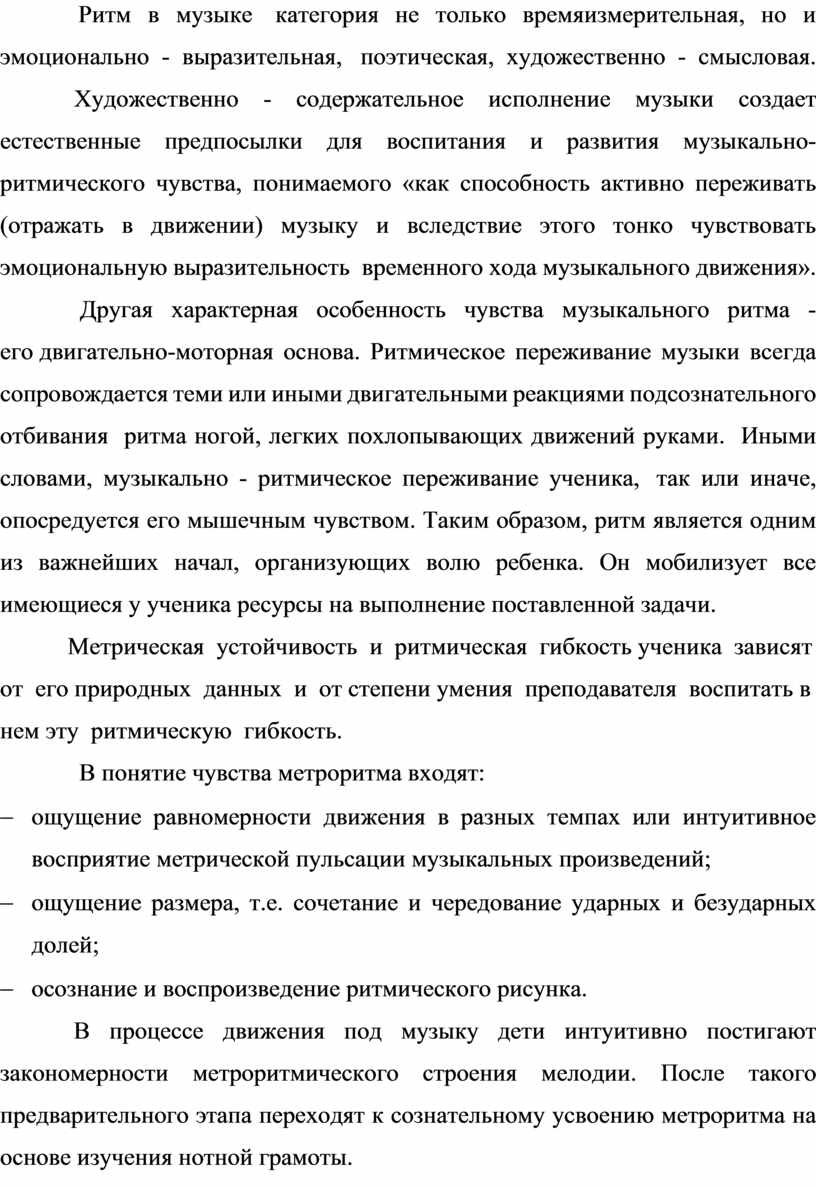 Методика формирования чувства метроритма