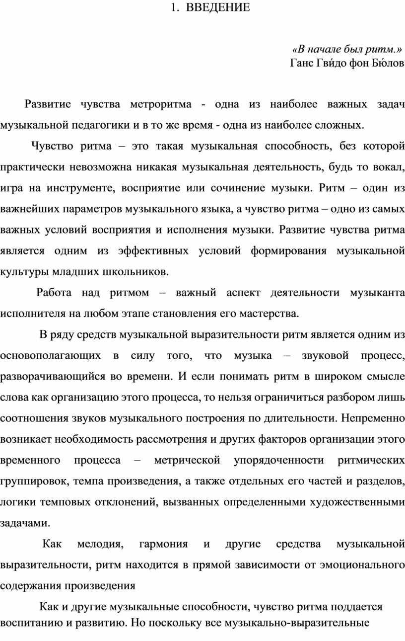 Работа над ритмом – важный аспект деятельности музыканта исполнителя на любом этапе становления его мастерства.