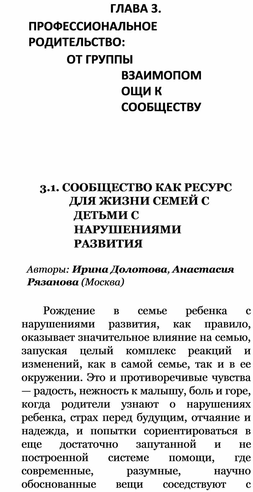 Глава 2. Взаимопомощь как ресурс для родителей людей с дополнительными потребностями