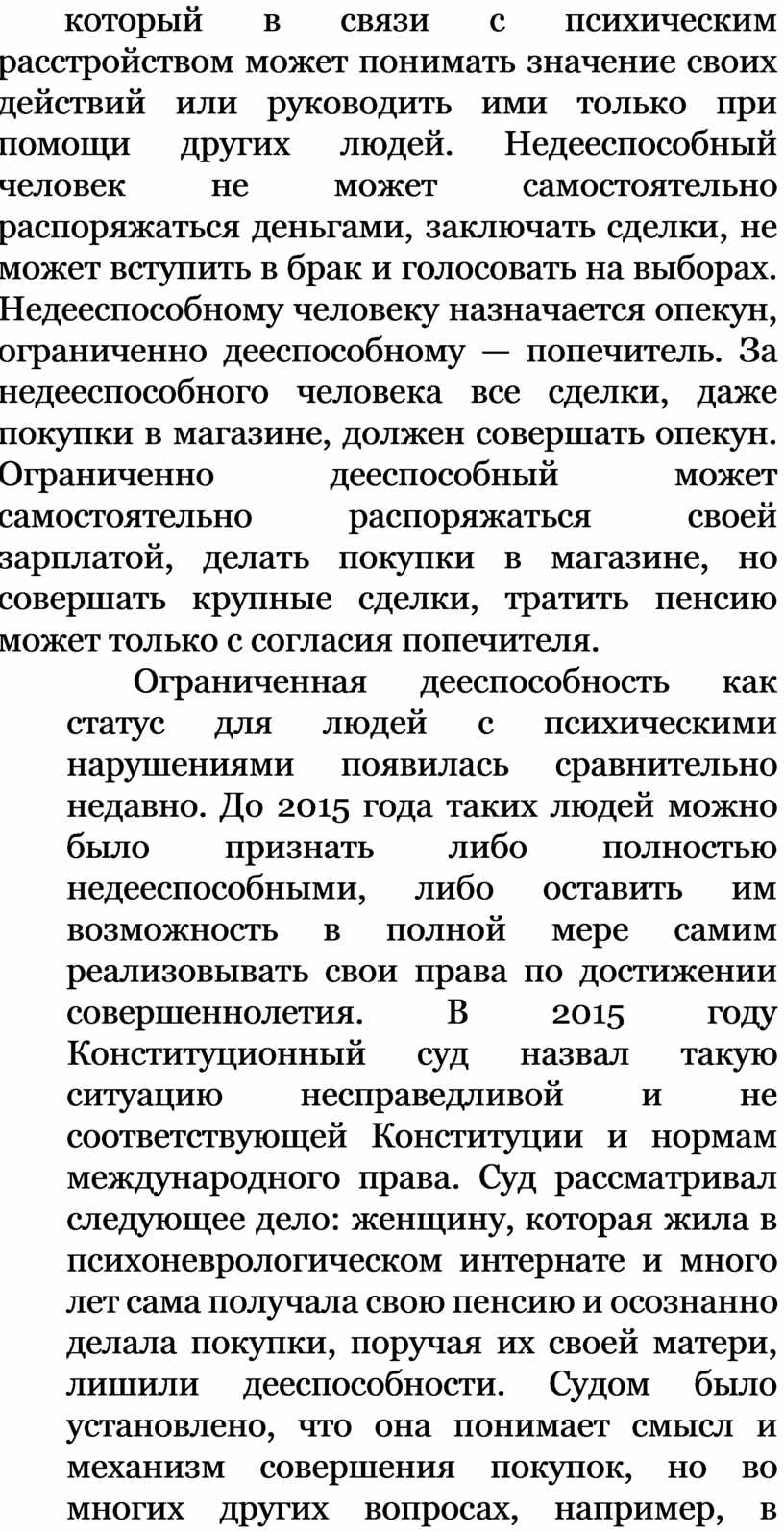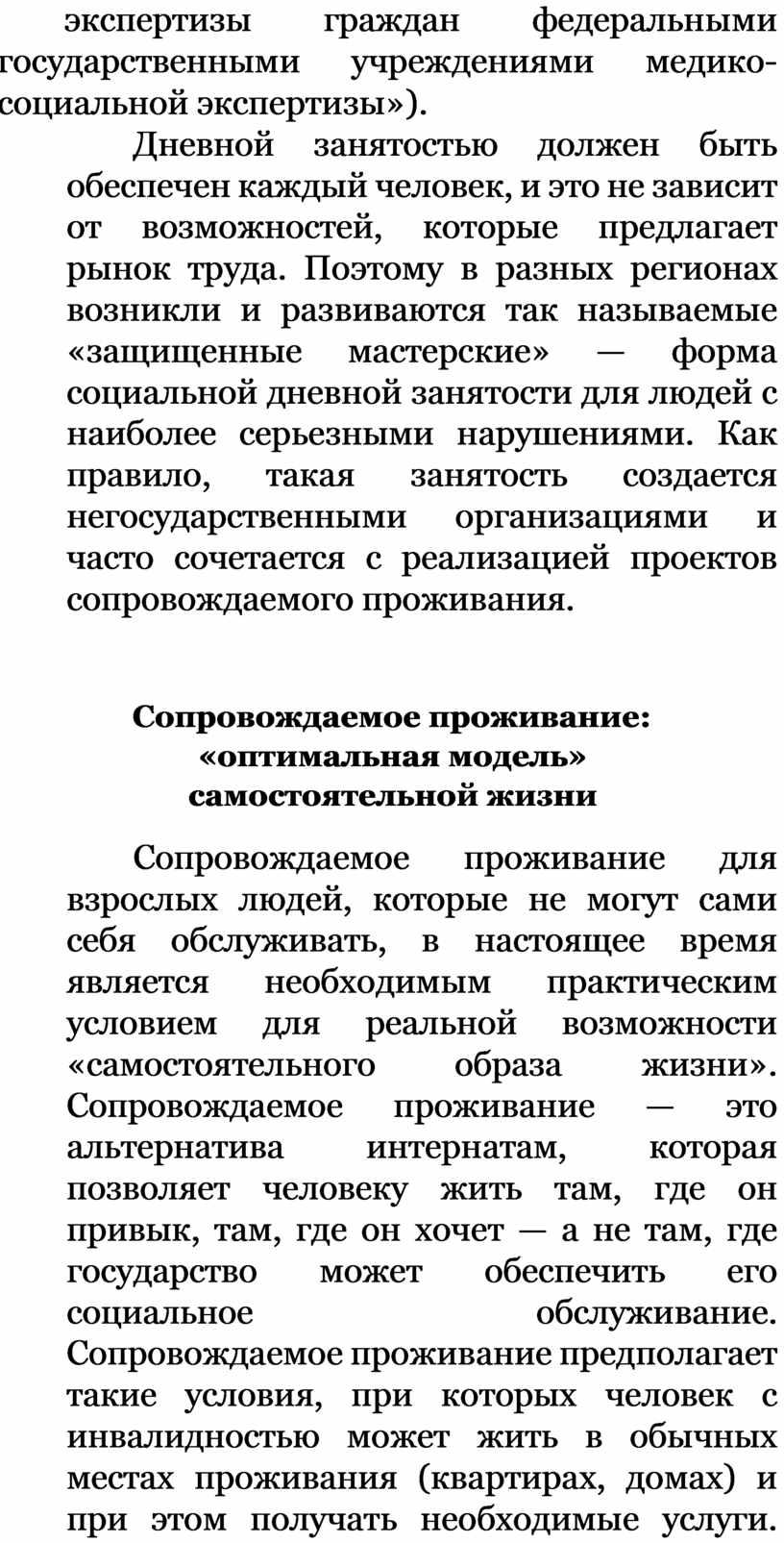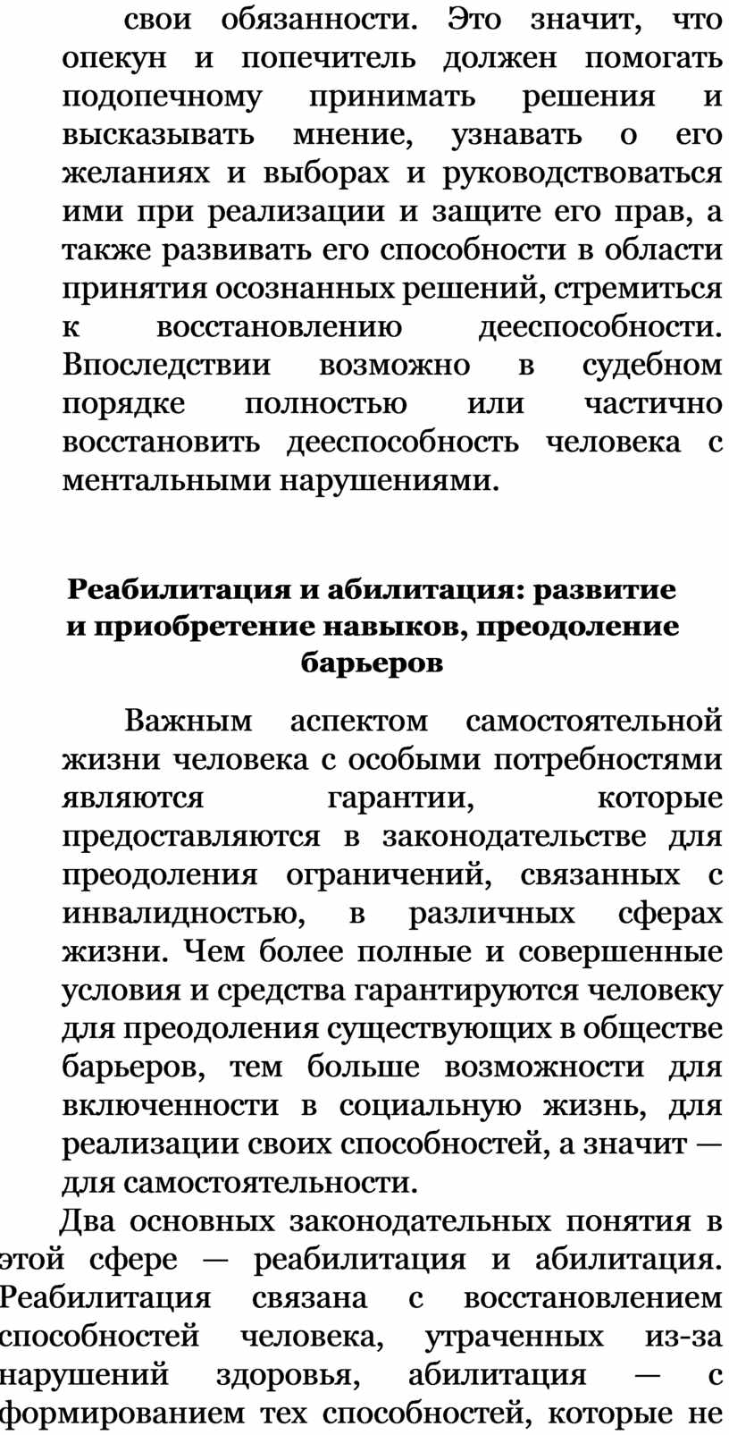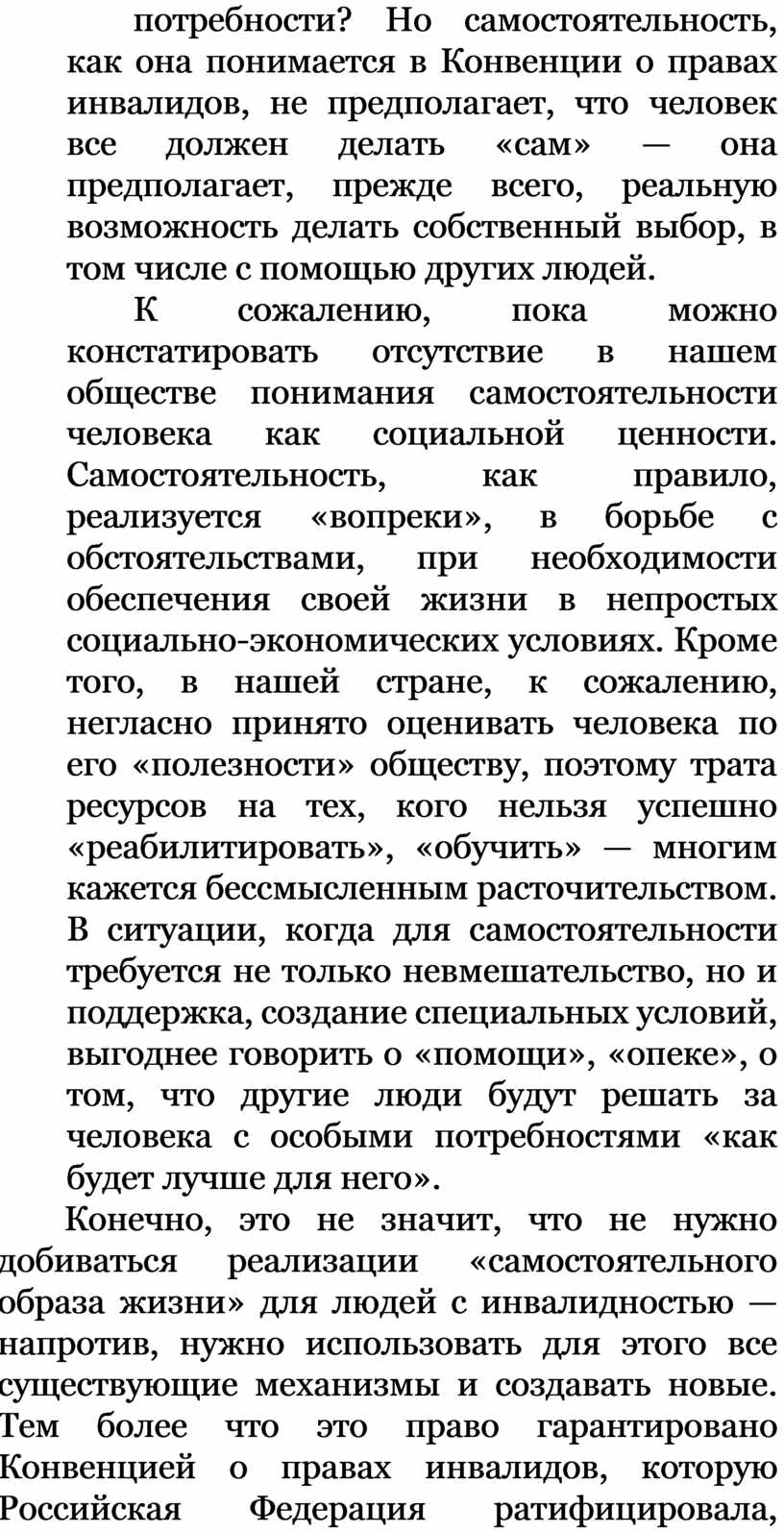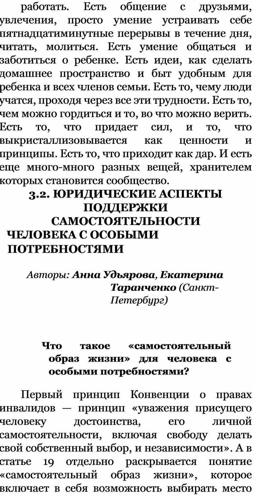 юридический блок, касающийся самостоятельной жизни людей с тяжелыми множественными нарушениями развития.