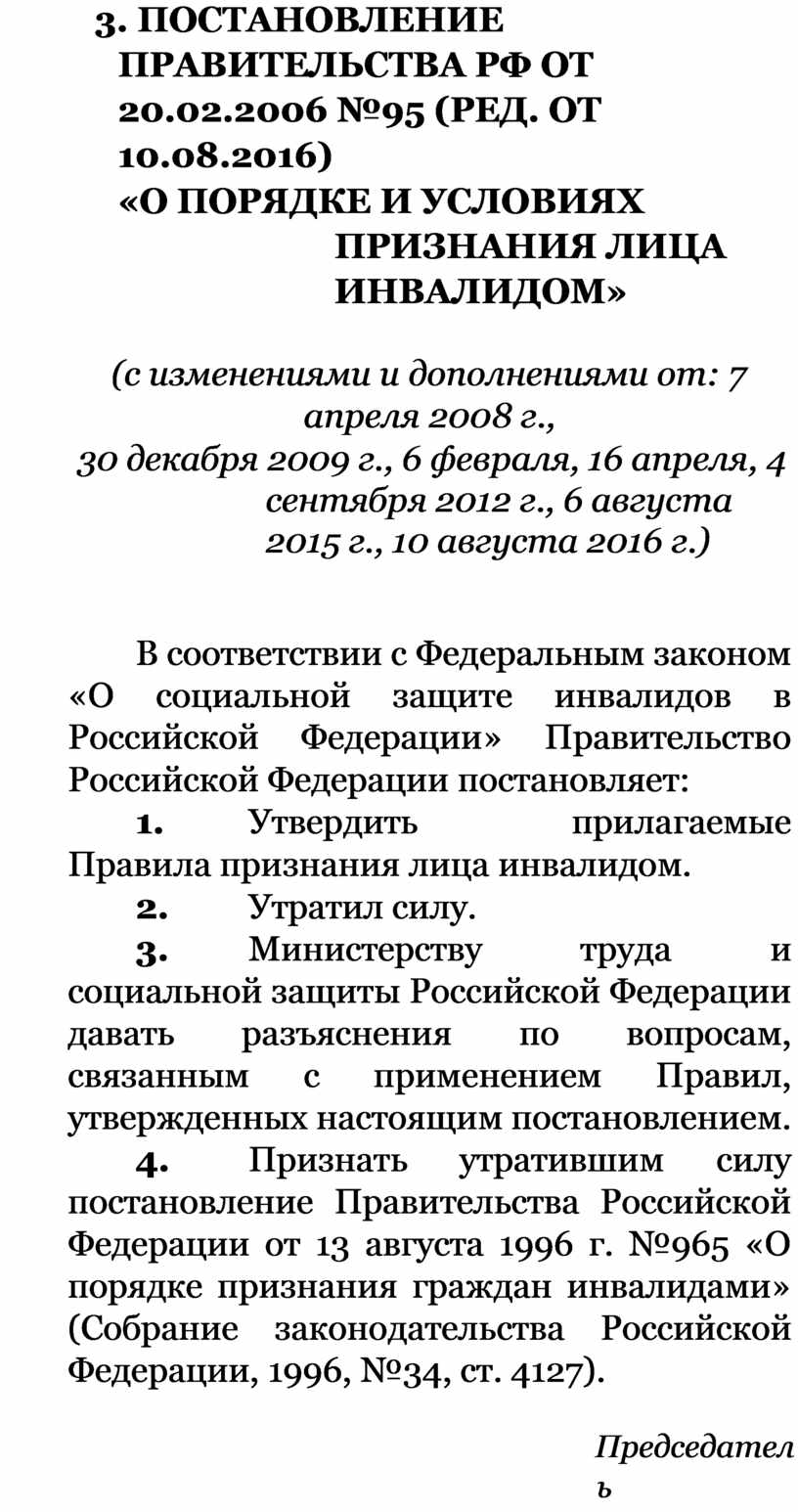 3. Постановление Правительства РФ от 20.02.2006 №95