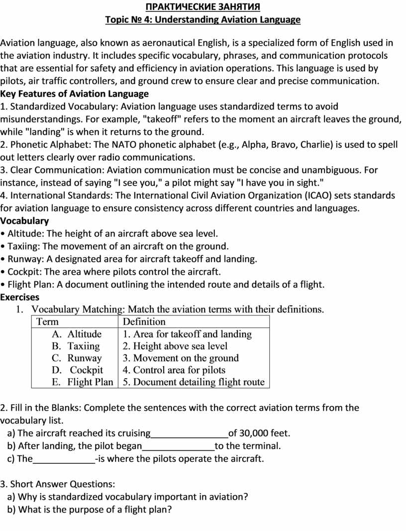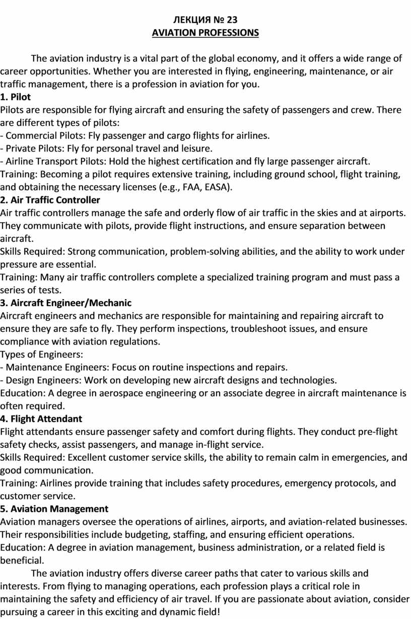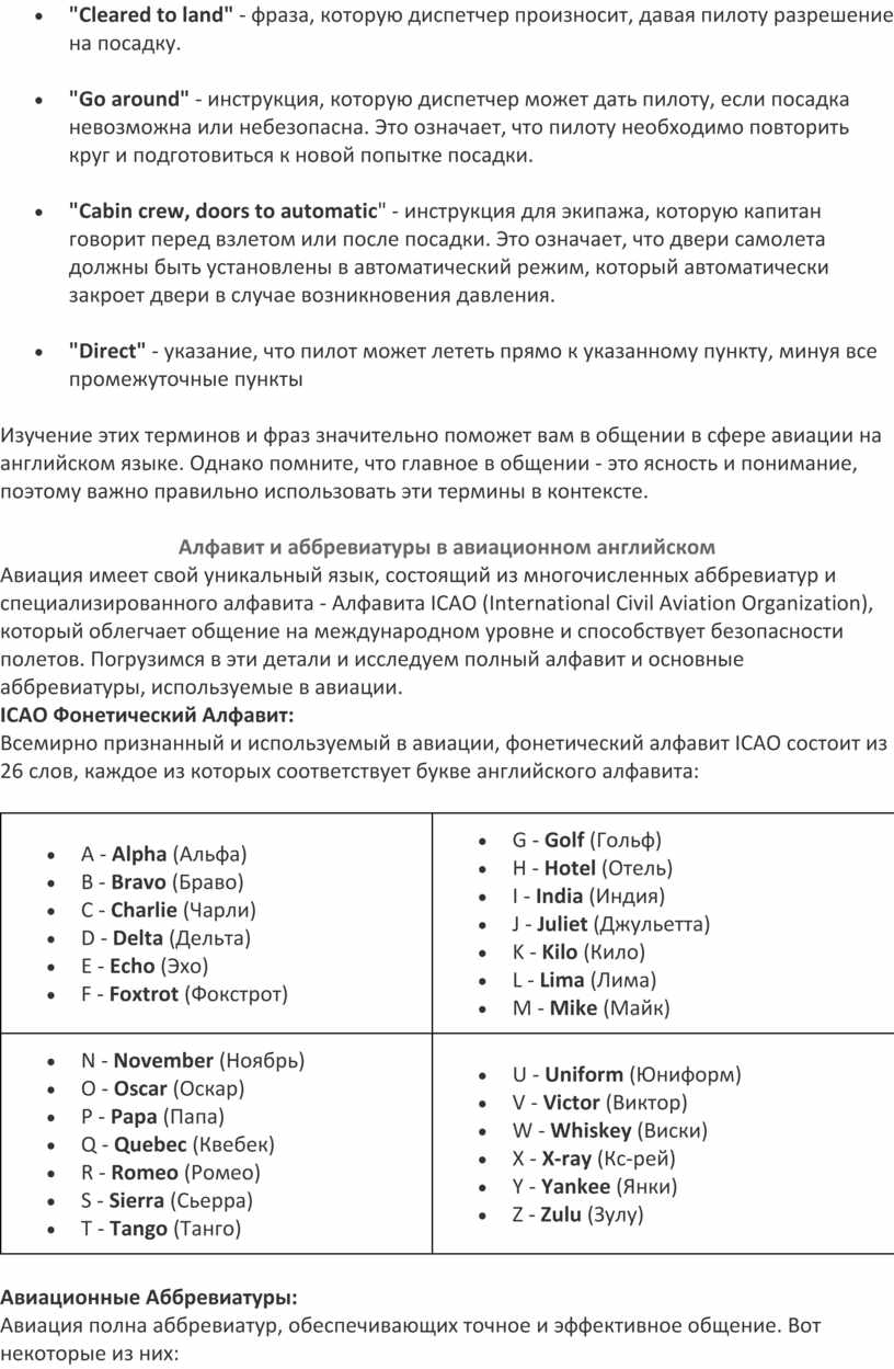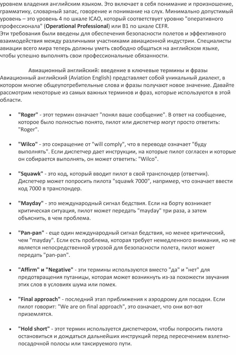 Все это подчеркивает важность профессионального обучения авиационному английскому. Он требует специализированного подхода и опыта, как в области авиации, так и в области преподавания английского языка.