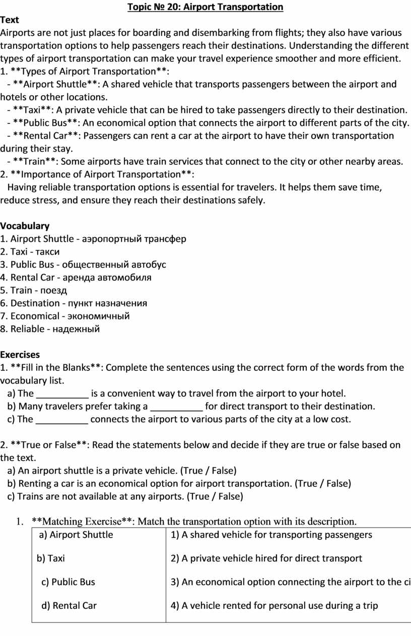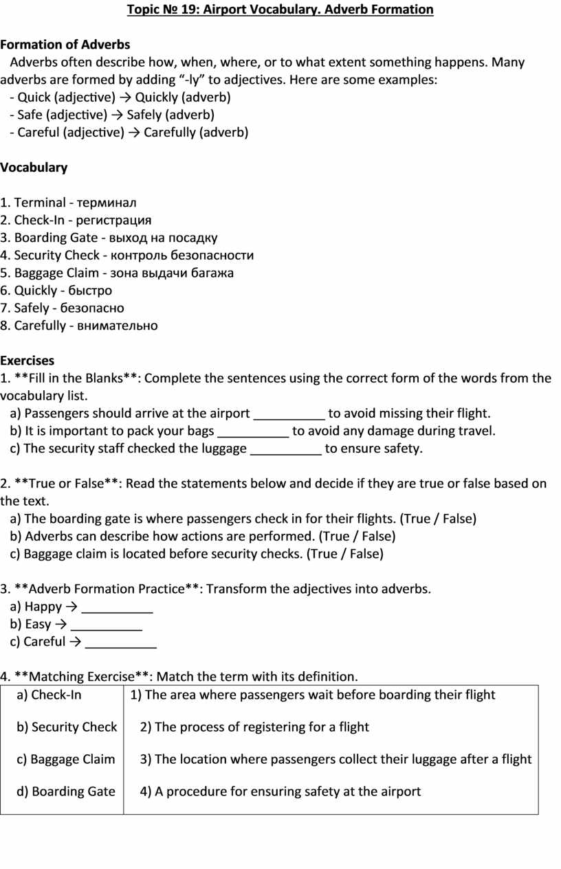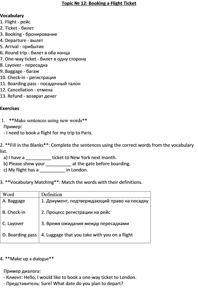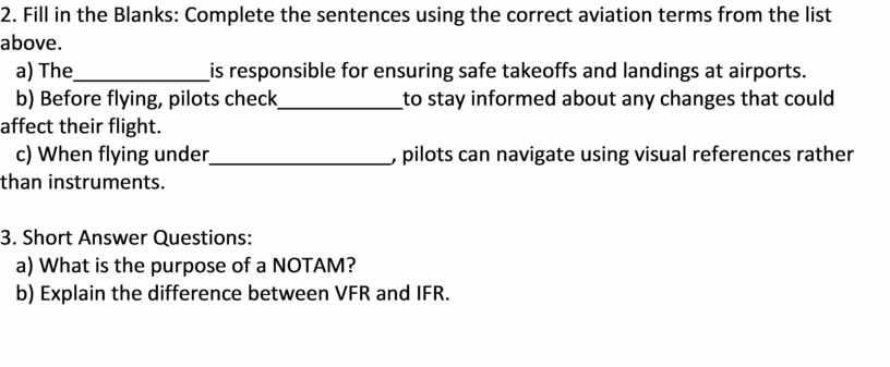 2. Fill in the Blanks: Complete the sentences with the correct aviation terms from the vocabulary list.