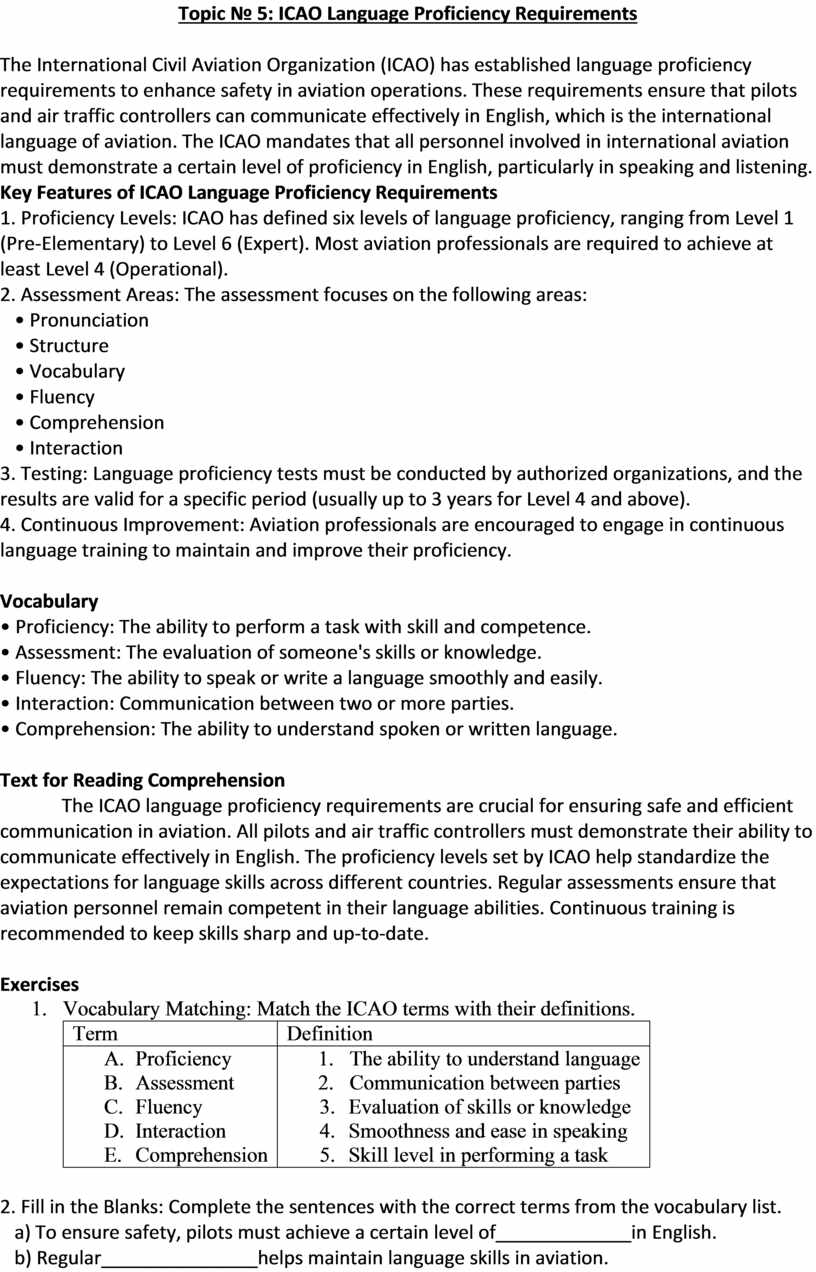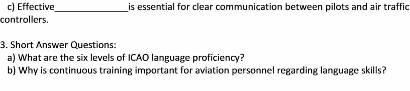4. International Standards: The International Civil Aviation Organization (ICAO) sets standards for aviation language to ensure consistency across different countries and languages.