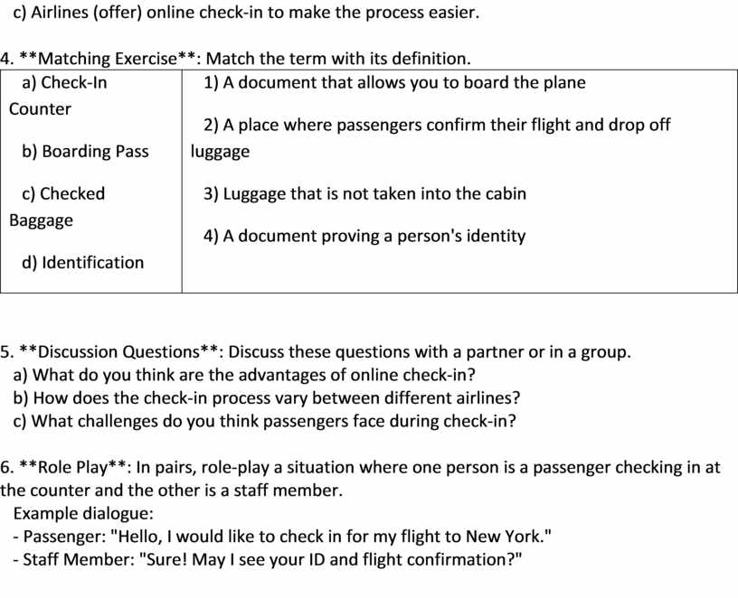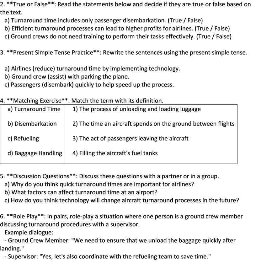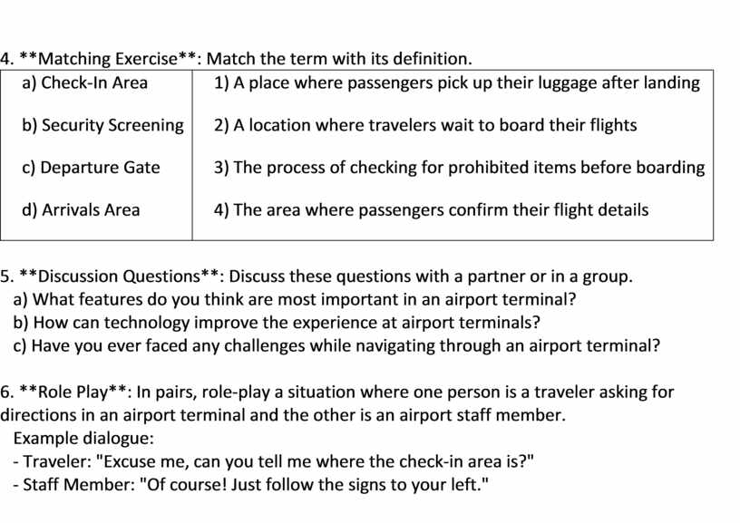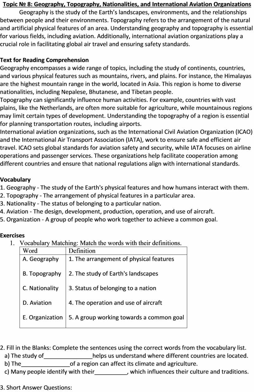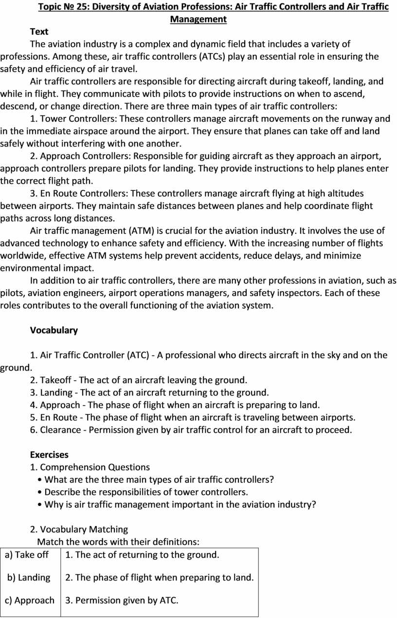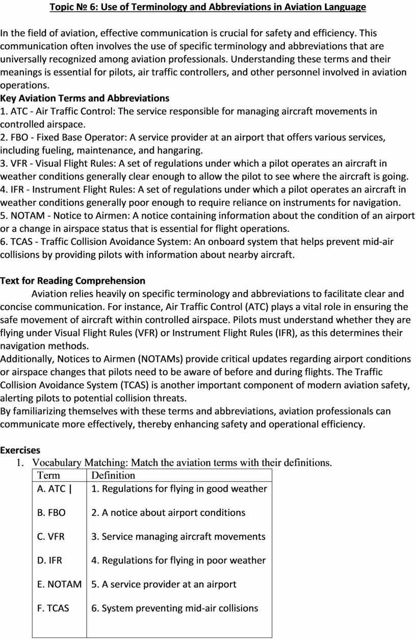 1. Vocabulary Matching: Match the aviation terms with their definitions.