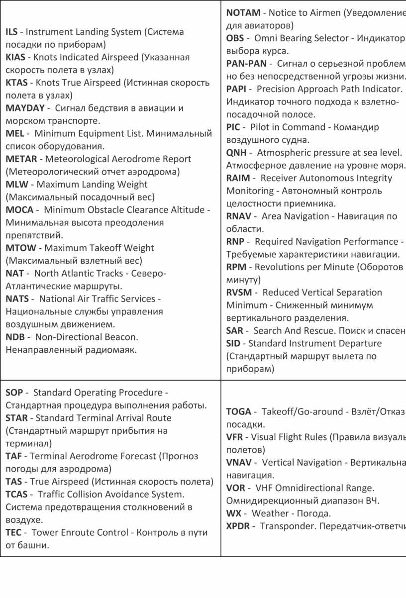 Авиация полна аббревиатур, обеспечивающих точное и эффективное общение. Вот некоторые из них: